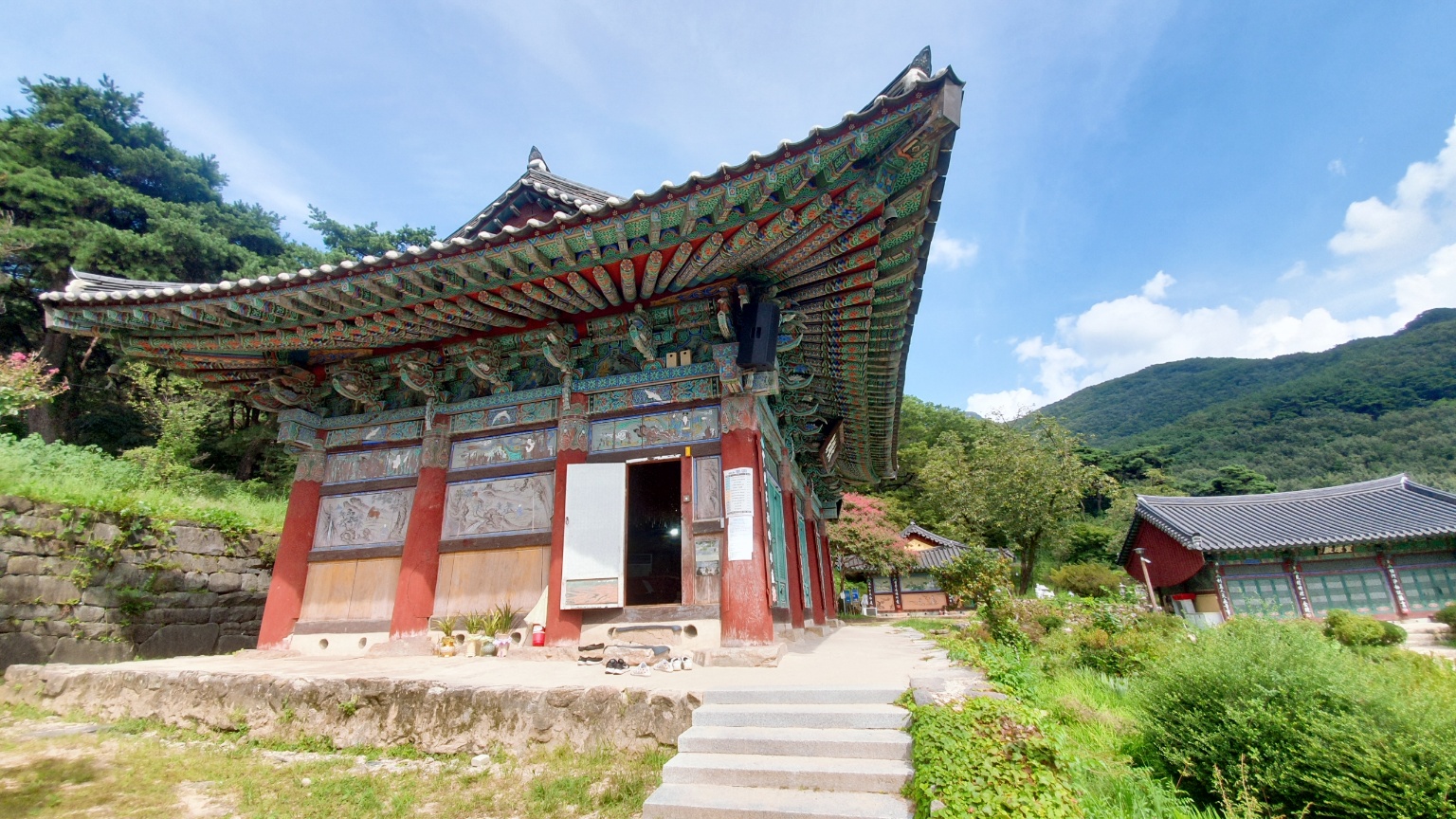 벽수선원을 지나 몇 계단단 올라가면 정중앙에 보이는 석탑 뒤로 대웅전이 자리 잡고 있으며 대웅전 왼쪽 편에는 독성각이, 오른편에는 영원전이 있습니다. 최근에 신축과 개수가 이루어졌으며 대웅전에는 전내에 아미타불을 주존불로 하여 우측에 대세지보살을, 좌측에는 관음보살을 모시고 있습니다.