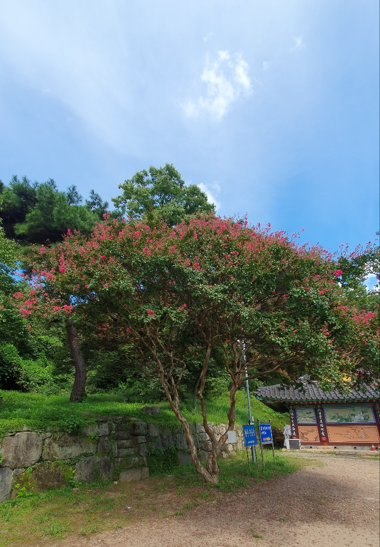 간지럼 나무라니, 세상 너무 귀여운 나무가 아닐까 싶습니다. 꽃말도 애교로 부끄러울 때 볼이 발그레 지는 것과 같은 색이 꽃을 가만히 바라보고 있으면 저절로 미소가 지어진답니다. 왜 이곳이 배롱나무 명소라 하는지 알 것 같았답니다.