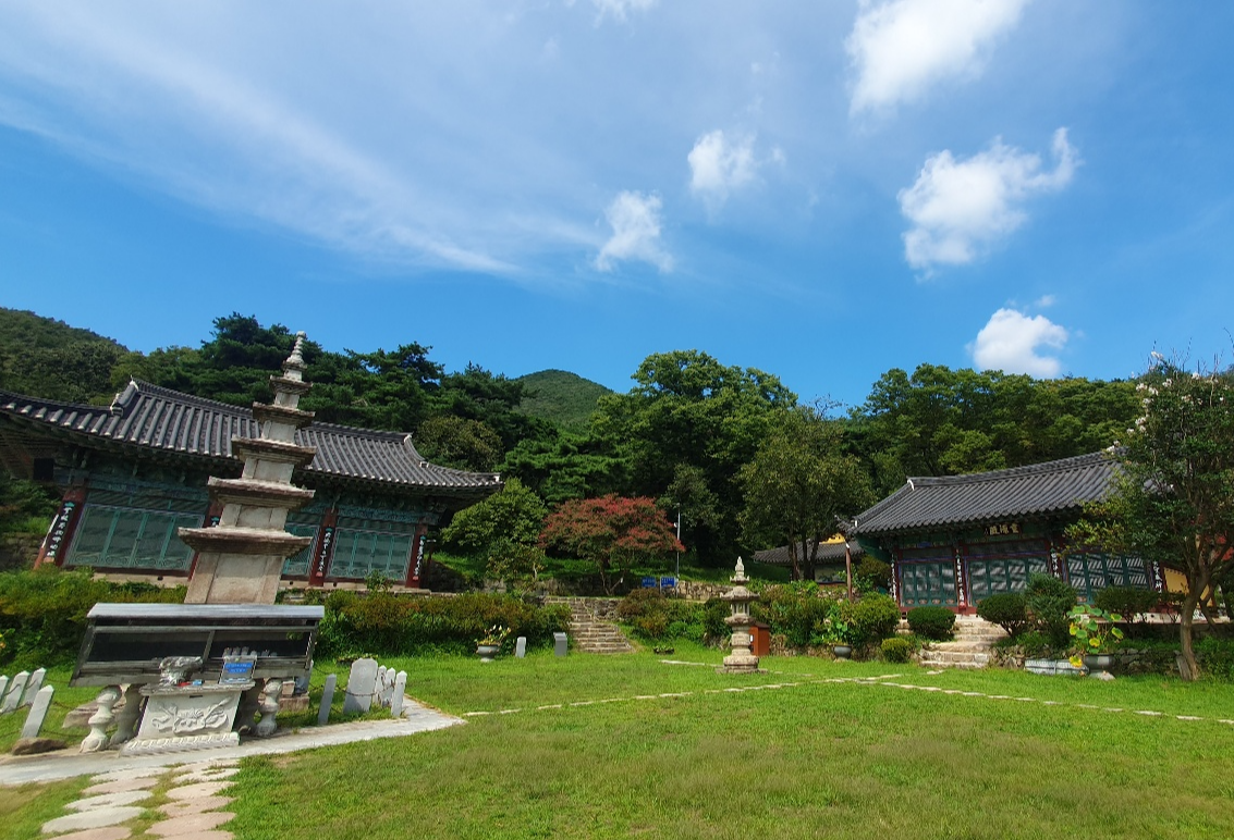 벽수선원을 지나 몇 계단단 올라가면 정중앙에 보이는 석탑 뒤로 대웅전이 자리 잡고 있으며 대웅전 왼쪽 편에는 독성각이, 오른편에는 영원전이 있습니다. 최근에 신축과 개수가 이루어졌으며 대웅전에는 전내에 아미타불을 주존불로 하여 우측에 대세지보살을, 좌측에는 관음보살을 모시고 있습니다.
