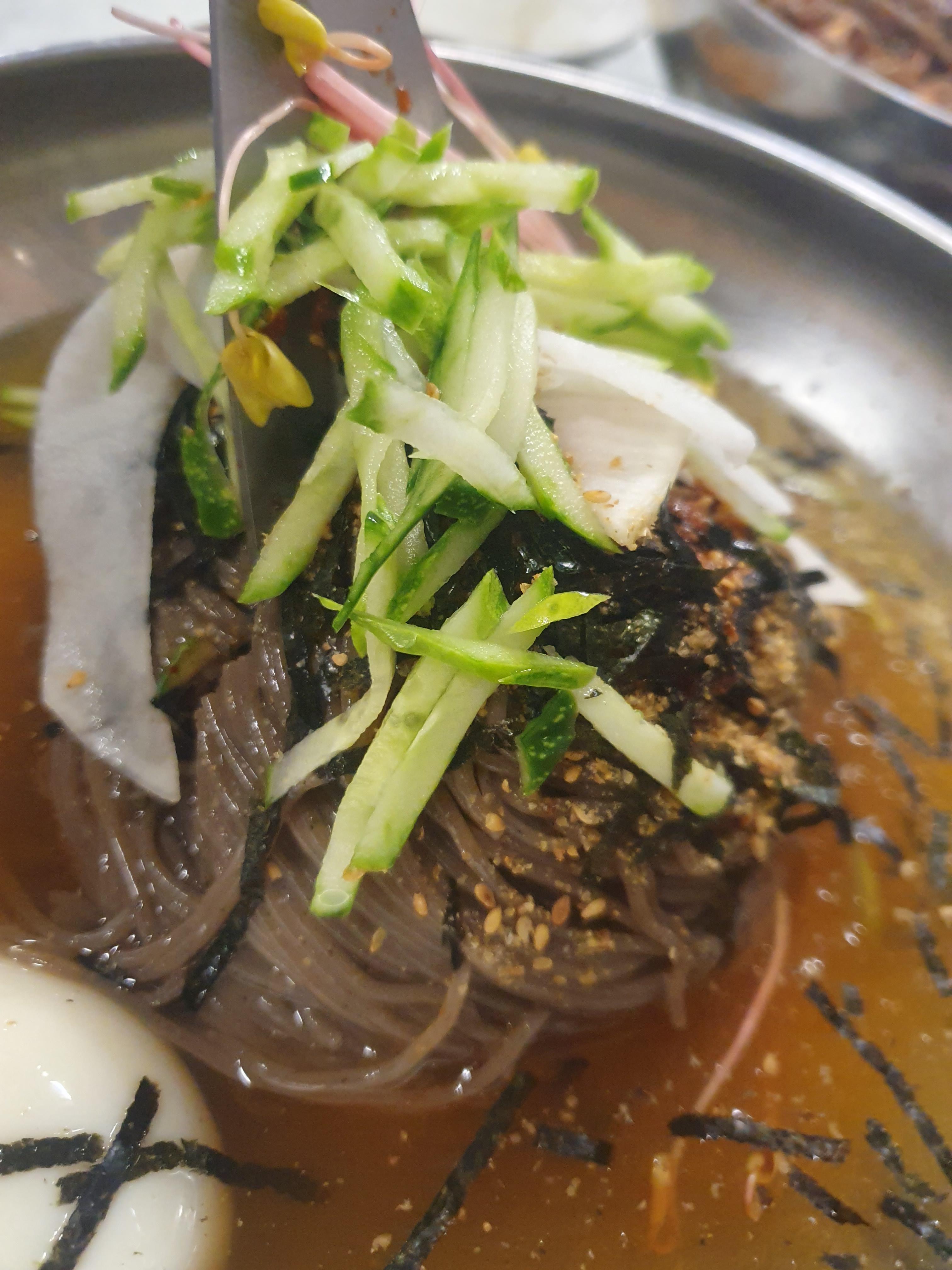 비빔막국수 맵기는 맵다는 생각이 1도 들지 않았고 누구나 먹을 수 있을 정도라서 아주 어린아이가 아니라면 누구나 좋아할 것 같습니다.