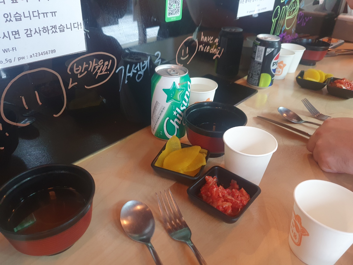 물과 국, 기본 반찬, 식기 들은 모두 셀프입니다.