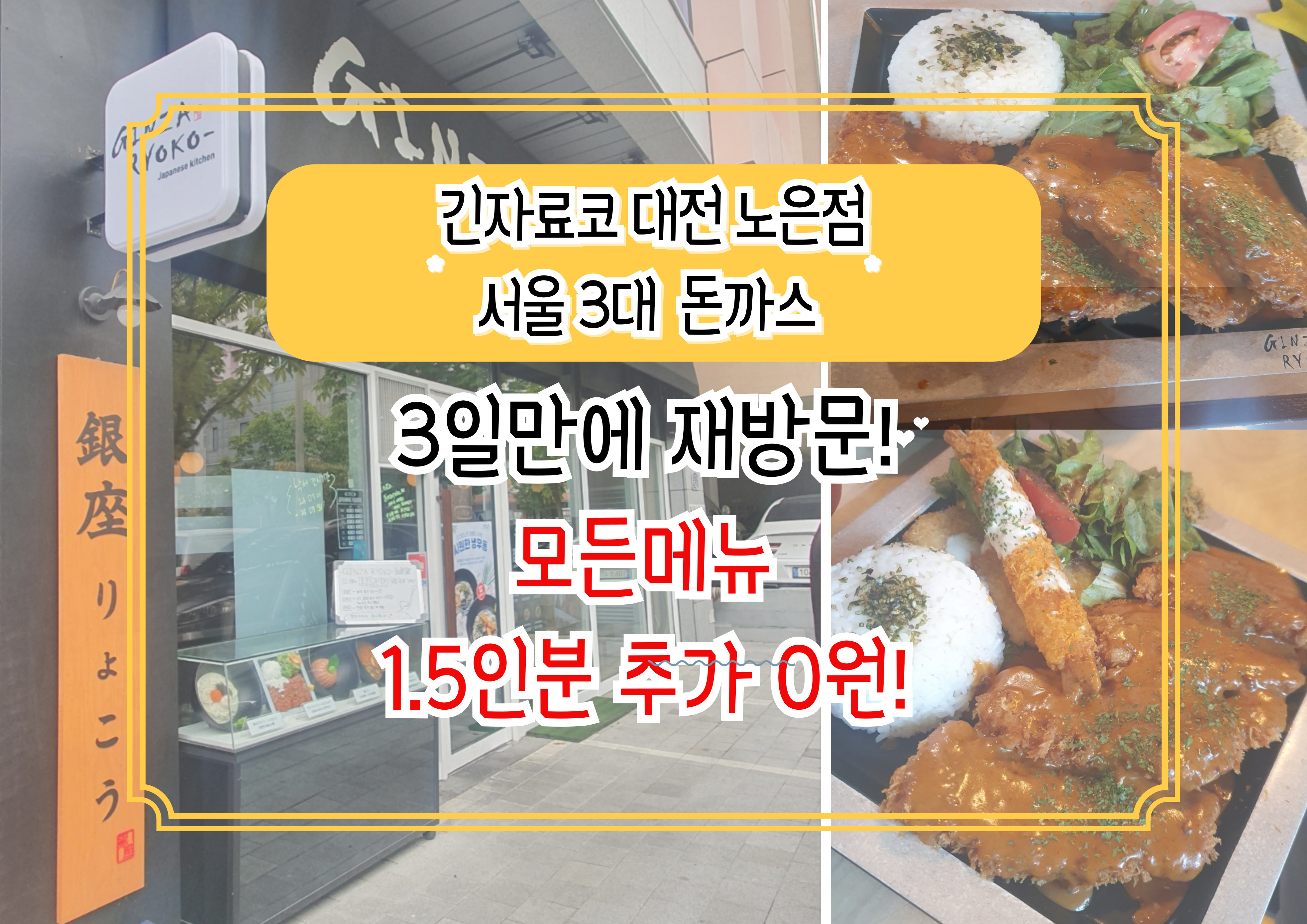 | 대전 돈까스맛집 긴자료코 노은점 (세트 최고! 무료 사이즈 업! 푸짐한 한 끼!) (2) | 2024.07.24 |