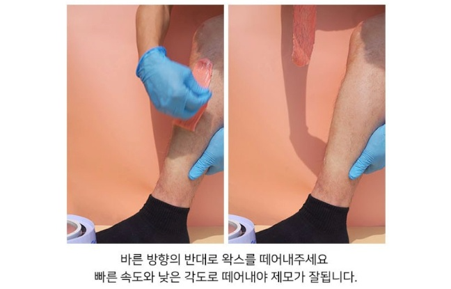 빠른 속도와 낮은 각도로 떼어내야 제모가 잘 됩니다.