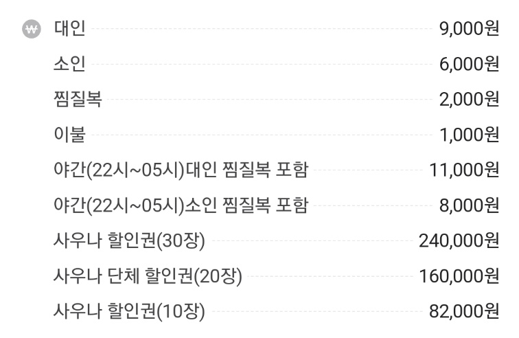 사우나/찜질 가격표