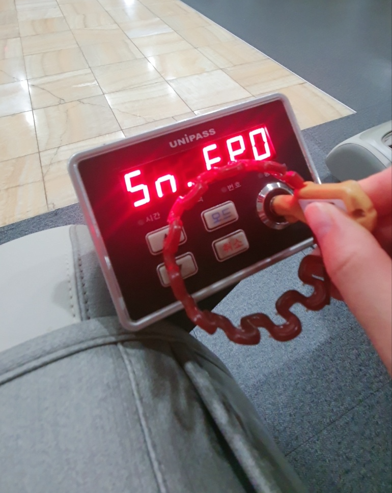 안마의자는 가지고 있는 열쇠를 홈에 두 번 터치하면 자동으로 작동됩니다. 20분 이용인데 자동코스가 끝이 나면 약 2분 정도 남아 있게 됩니다. 2분이 남아있다고 해서 다른 버튼을 눌렀을 때 안마를 받을 수 있는 게 아니고 종료가 진행되는 상황이니 다른 버튼을 눌렀을 때 작동이 멈추는 불상사가 생기므로 그냥 가만히 기다리시면 됩니다.