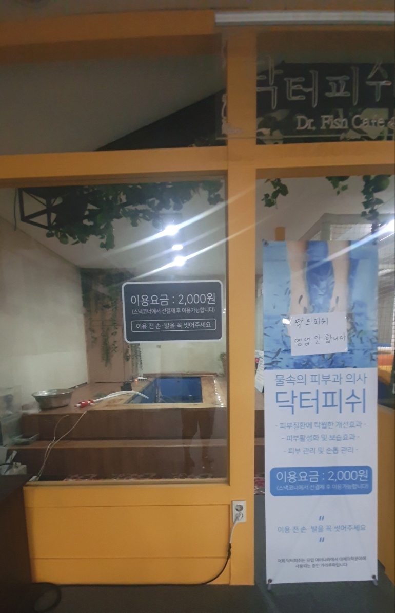 놀이방 옆에는 <닥터피시 체험>(2,000원)을 할 수 있는 곳이 있었는데 저희 가 방문했던 날에는 내부 청소를 하는중인지 운영을 하지 않아 아쉬웠습니다.