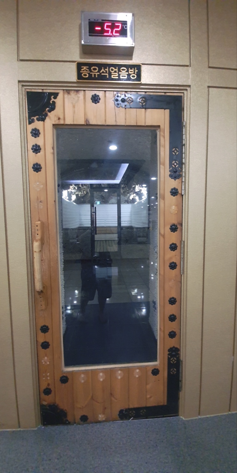 라면을 먹고 더운감이 있어 제일 먼저 얼음방을 찾았습니다. 내부로 들어가면 벽면이 얼음으로 되어 있는 방이 나옵니다.