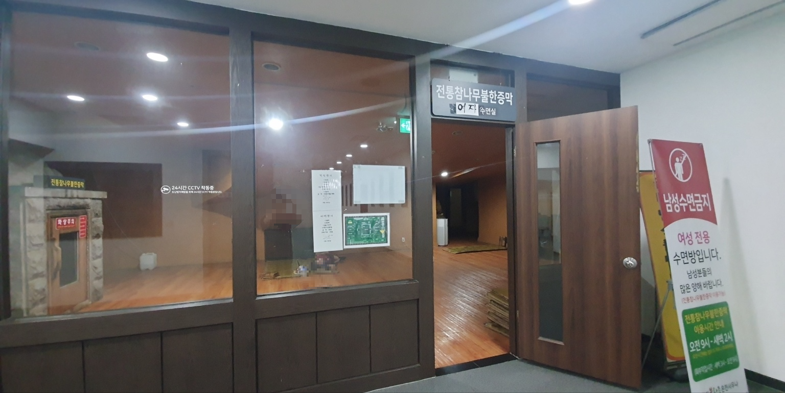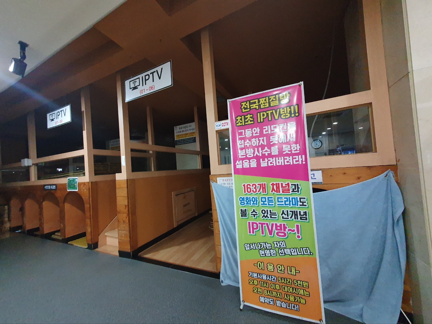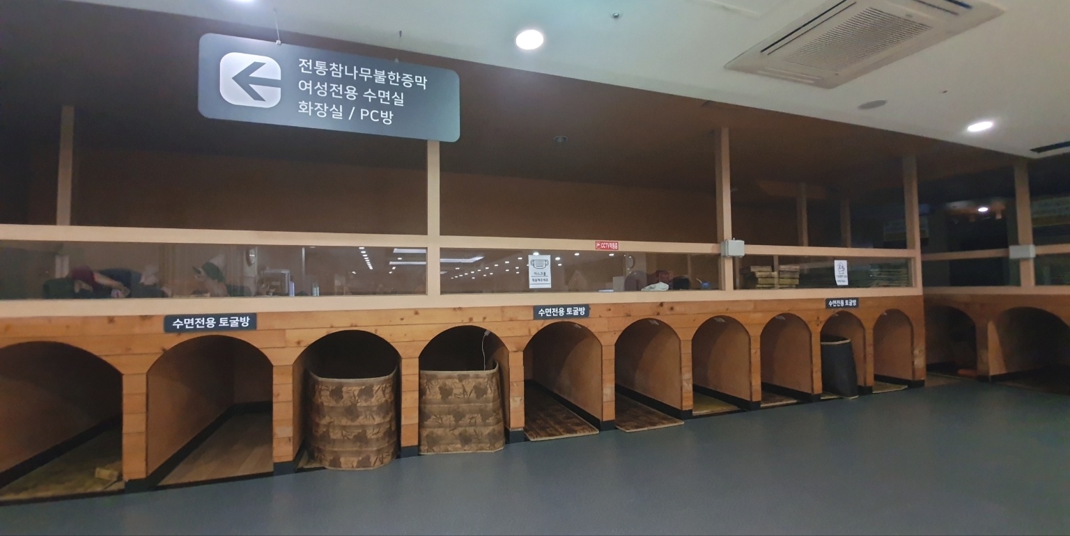 수면전용 토굴방 왼쪽 편으로 걸어 들어가면 <화장실>이 있고 맞은편에는 pc방이 있는데 pc가 두대정도 있었고 사용은 잘 되지 않는 것 같아 보였습니다. 복도를 따라 더 걸어 들어가면 <여성전용 전통참나무불한증막>과 <흡연실>도 보입니다.