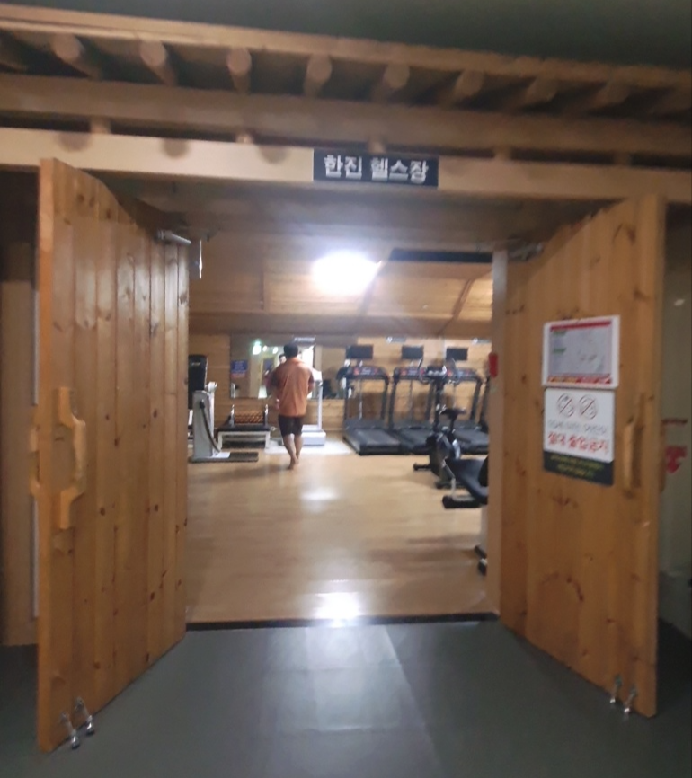 닥터피쉬방 옆에는 <한진 헬스장>이 있었는데 내부에 운동기구들이 상당히 많이 있어 놀랬습니다.
