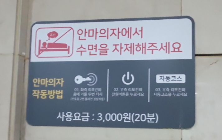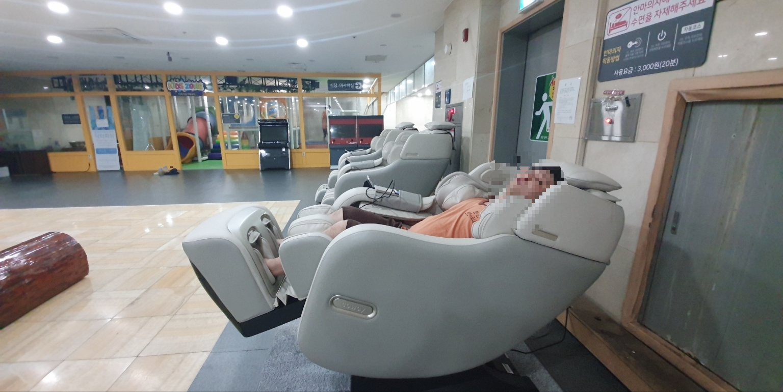 찜질을 하고 저희 가 향한 곳은! 바로 '안마의자'입다. 딱 봐도 좋아 보이는 안마의자입니다.