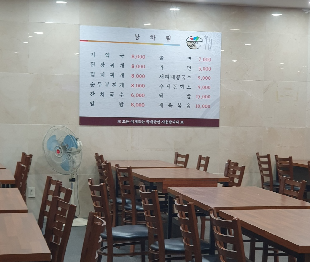 놀이방 오른쪽으로 <식당>이 위치해 있습니다. 이곳은 매주 화요일 휴무입니다.
