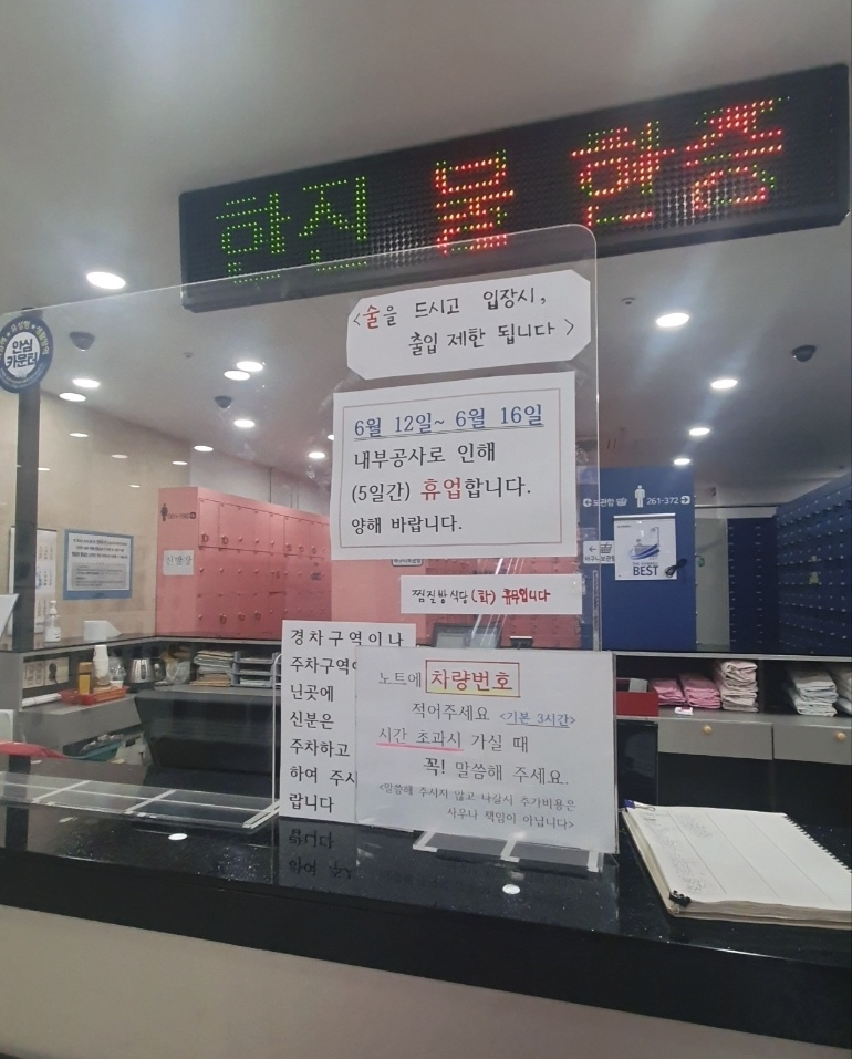 - 노트에 차량번호 적어주세요.(기본 3시간 시간 초과 시 가실 때 꼭! 말씀해 주세요.) 말씀해 주시지 않고 나갈 시 추가 비용은 사우나 책임이 아닙니다.