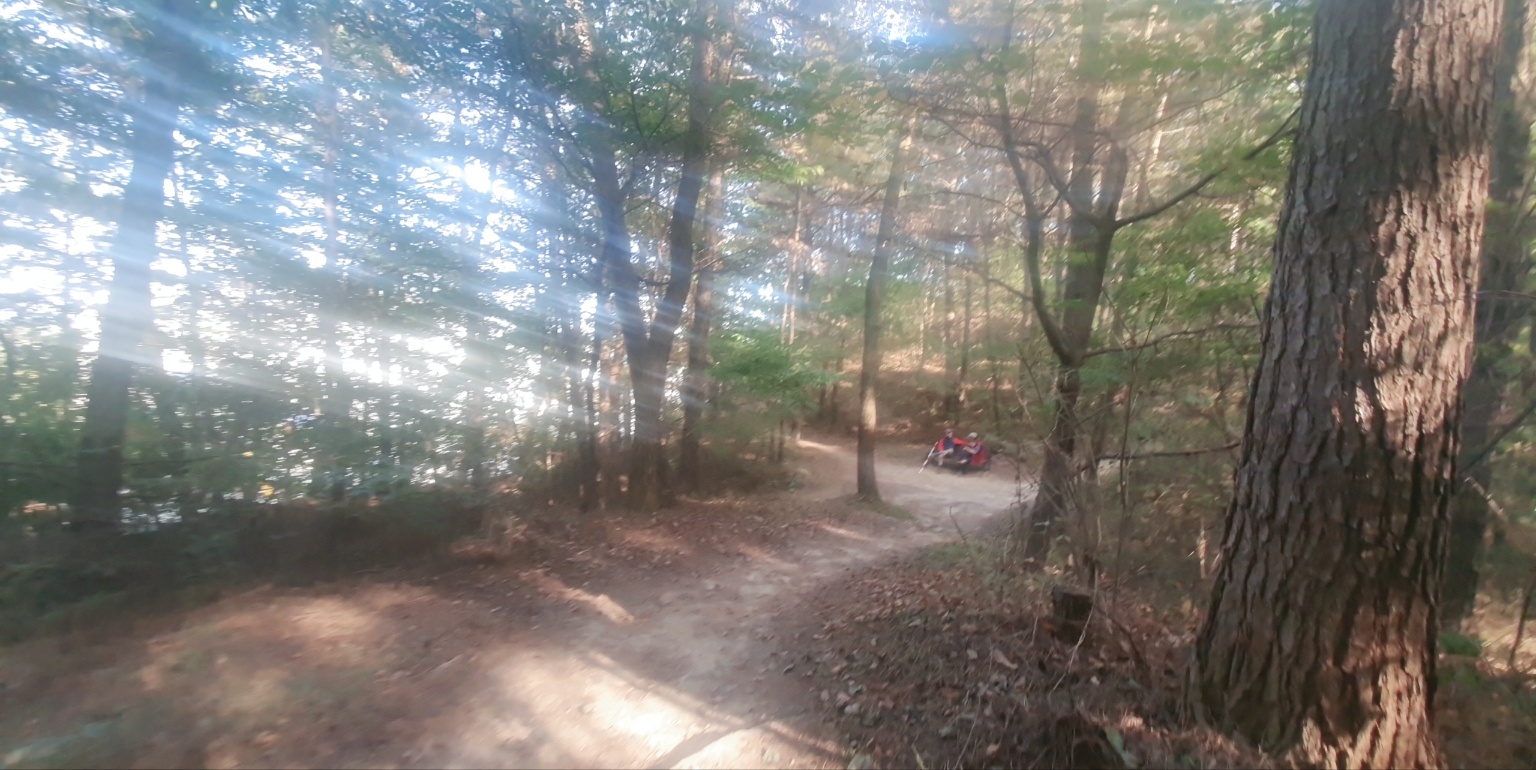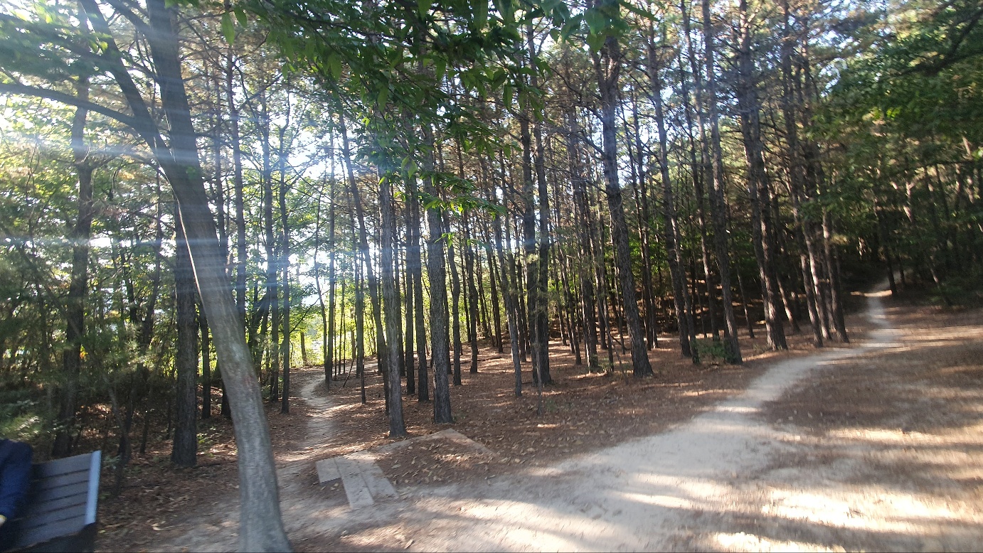 가끔씩 자전거를 타고 산을 넘나드는 분들이 있으신데요, 제대로 장비를 갖추고 타시는 분도 계시고 친구와 함께 자전거를 끌고 온 학생들도 있답니다. 그리고 놀랬던 건 벤츠 옆쪽에 신고 온 신발을 벗어놓고 맨발로 산책을 즐기시는 분들도 많았는데, 땅이 잘 다져져 있어서 맨발로 걷기에도 좋아 보였답니다.