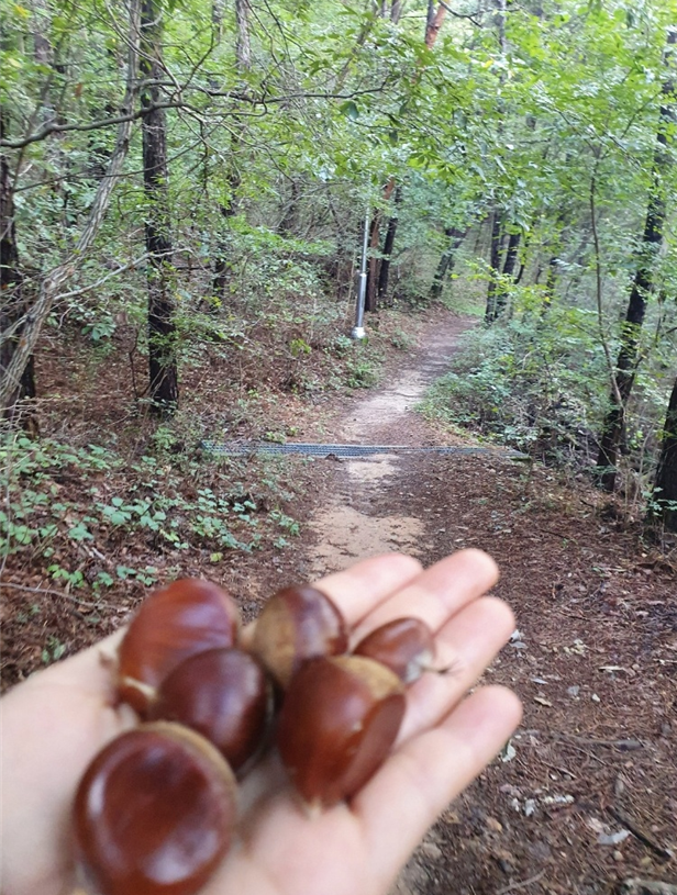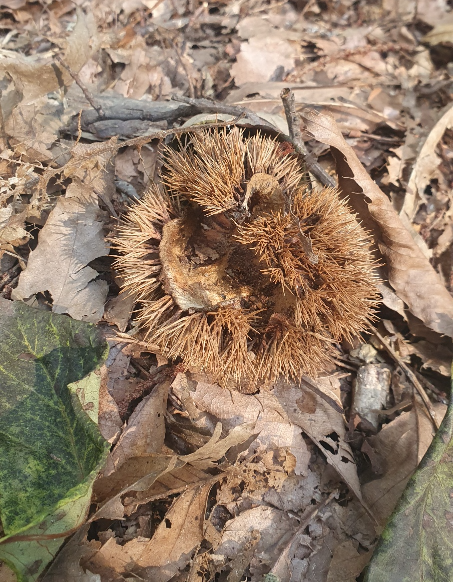 밤나무가 굉장히 많아서 추석쯤엔 밤을 입에 물고 가는 모습도 본 적이 있답니다. 작년 추석 때에는 윤기 나는 알밤도 여러 차례 주워서 등산하는 재미가 쏠쏠했었는데 올해는 타임이 다 안 좋아서일까 부지런 한 분들이 밤을 먼저 주워 가셨답니다.