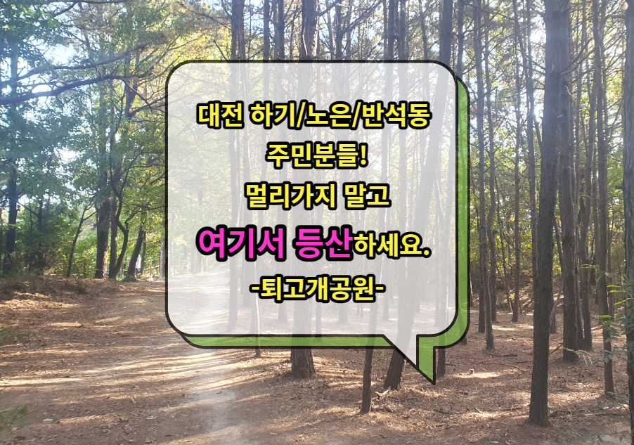 결혼 후 제주에서 대전으로 올라와서 가장 좋았던 장소 하나가 있습니다. 바로 하기동에 위치한 우리 집 뒷산입니다. 멀리 나가거나 헬스장을 다니지 않아도 집 밖을 나서기만 그날의 컨디션에 맞추어 적절한 운동을 할 수 있는 곳으로 "일주일에 한두 번 정도는 꼭 다녀와야지!" 하는 짧지만 확실히 운동되는 '퇴고개 공원'입니다.