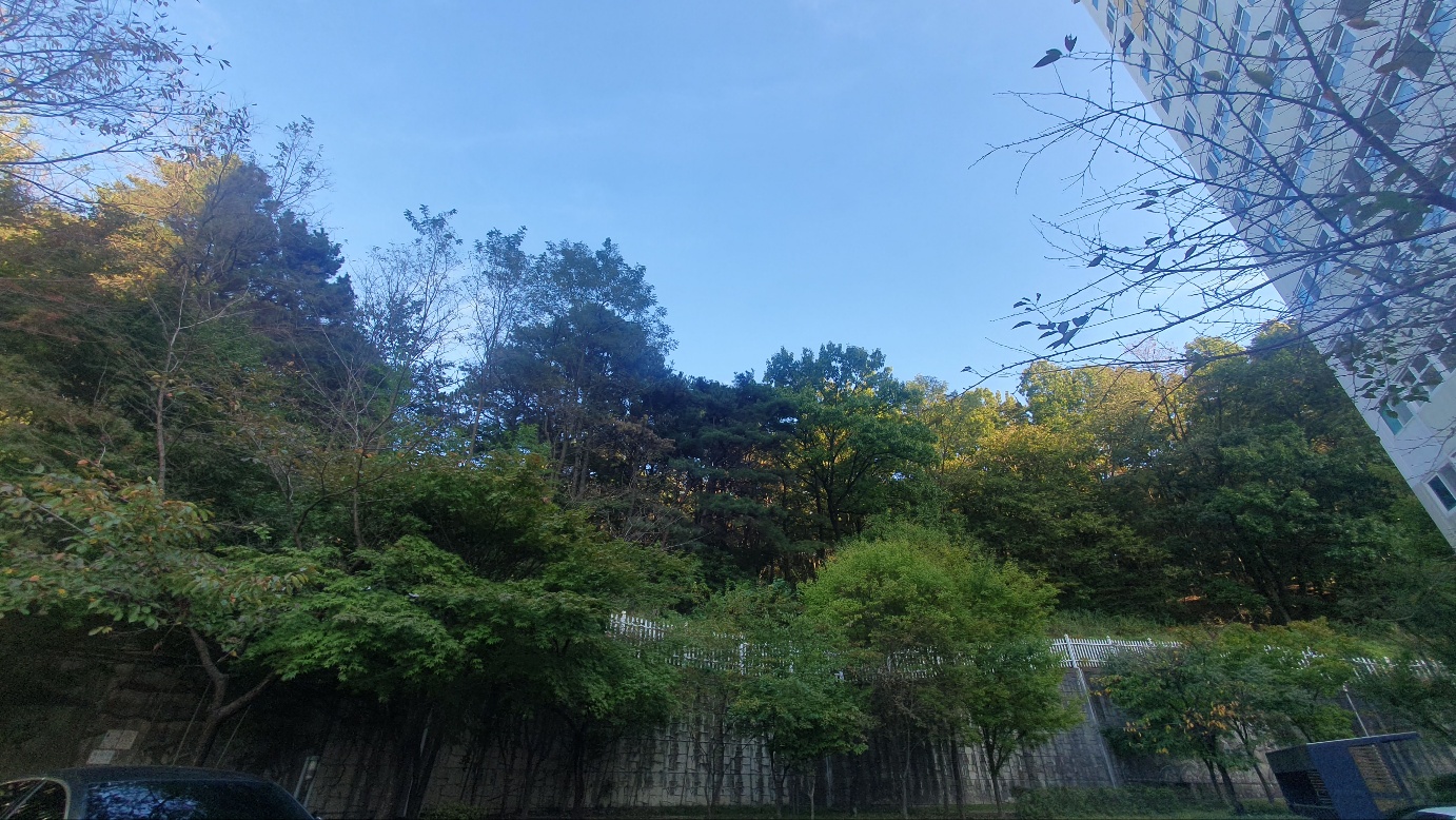 송림마을 4단지의 마지막 408동 뒤쪽 편으로 진입 가능한데요, 아파트 담벼락 위로 올려다보기만 해도 공원 크기가 상당합니다.