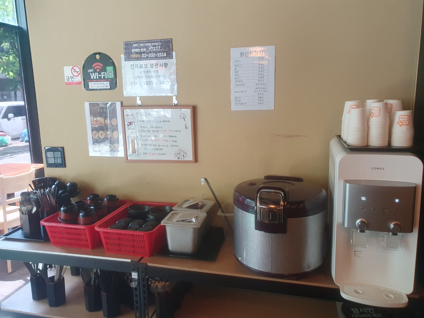 물과 국, 기본 반찬, 식기 들은 모두 셀프입니다.