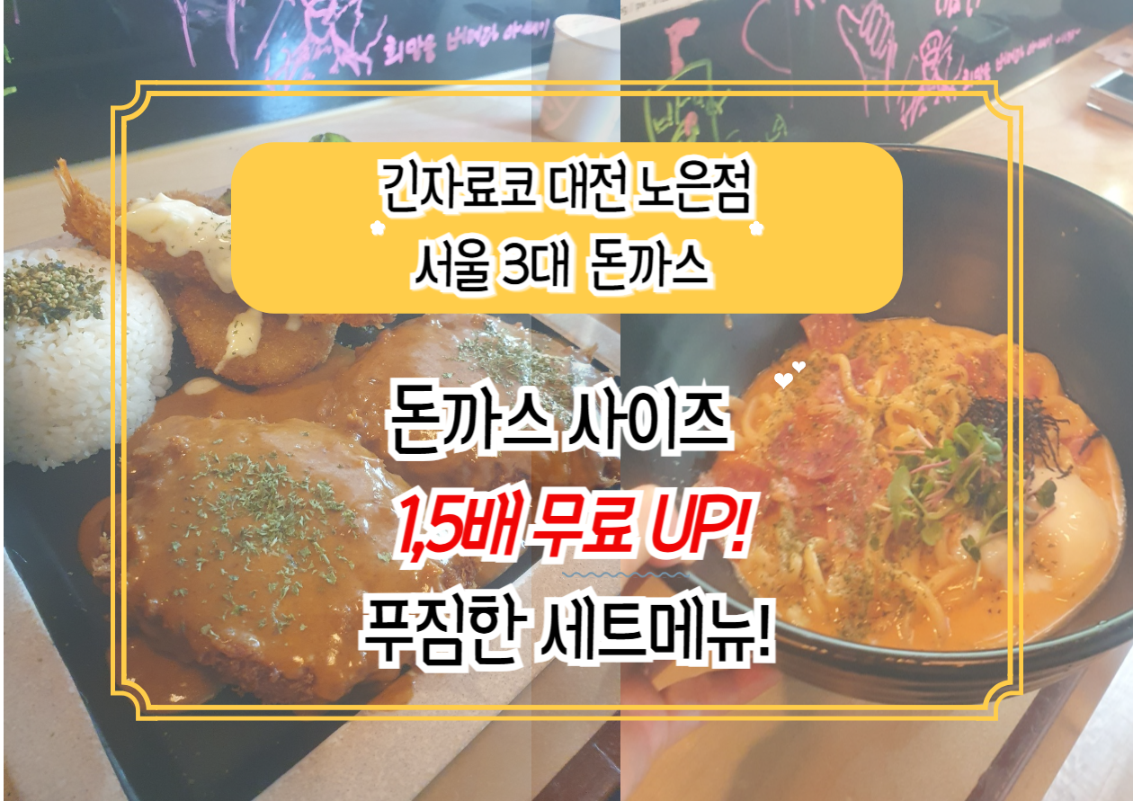 안녕하세요. ♥요망진 쥐똥♥입니다. 대전 돈까스맛집 긴자료코 노은점 (세트 최고! 무료 사이즈 업! 푸짐한 한 끼!)안녕하세요. ♥요망진 쥐똥♥입니다. 오늘은 오후 출근하는 친구와 일찍 만나
