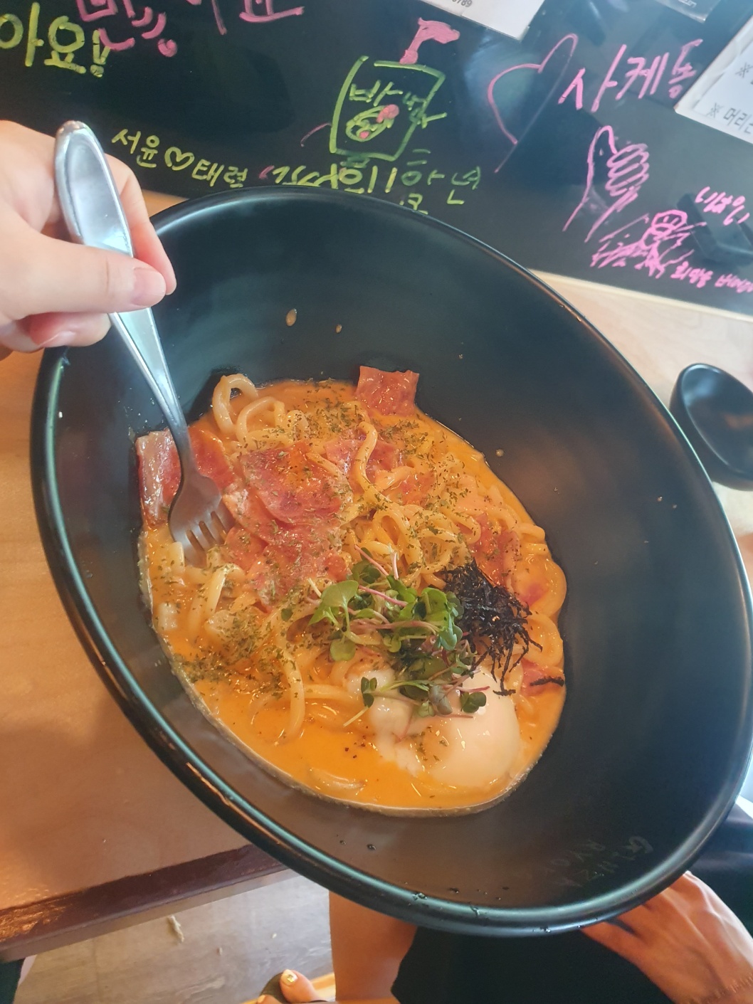 개인적으로 파스타 면보다 우동 면이 들어가 있어