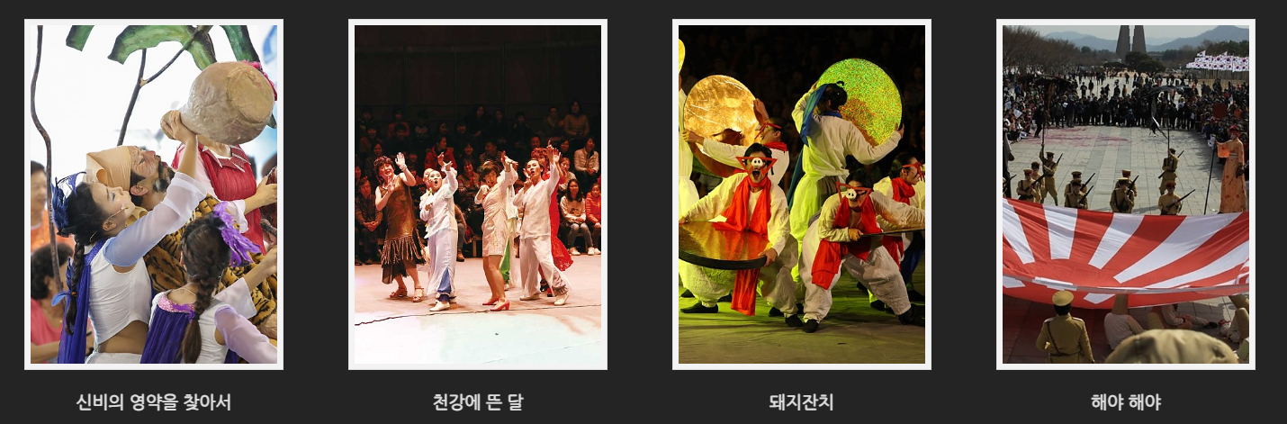 작품들을 살펴보면 광주프린지페스티벌 작품상 문화예술단체상 수상을 받은 '천강에 뜬 달', 창작국악극대상 작품상을 받은 '쪽빛황혼', 창작국악극대상 연주상 수상 작품인 '돼지잔치', 창작연희부문 대상수상 '할머니가 들려주는 우리 신화이야기' 등등 수상을 받은 작품들이 대부분 이랍니다.