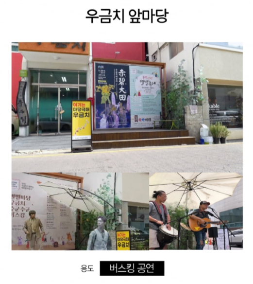 시민들을 위해 공연예술 특성화 극장을 운영하는 마당극패 우금치는 대흥동 문화예술의 거리에 위치해 있으며