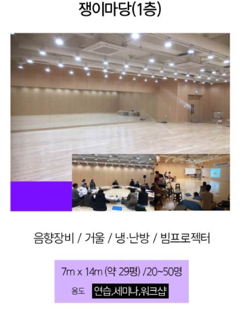 대관안내 1 페이지 | (사)마당극패 우금치