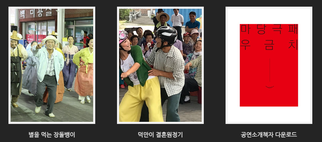 사라져 가는 전통연희를 발굴, 재창조하는 대한민국 마당극 대표 극단, '마당극패 우금치'가 운영하는 복합 문화 예술 공간. 동시대 사회 이슈를 풍자와 해학이 담긴 한국적 공연으로 풀어낸 마당극을 전국순회공연 합니다.
