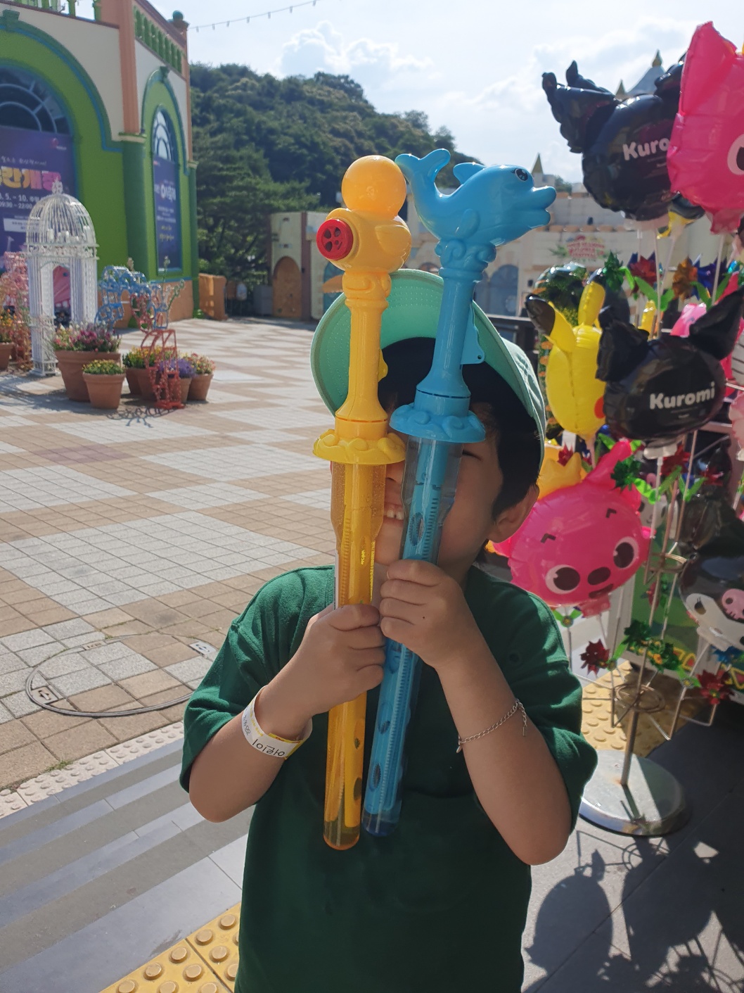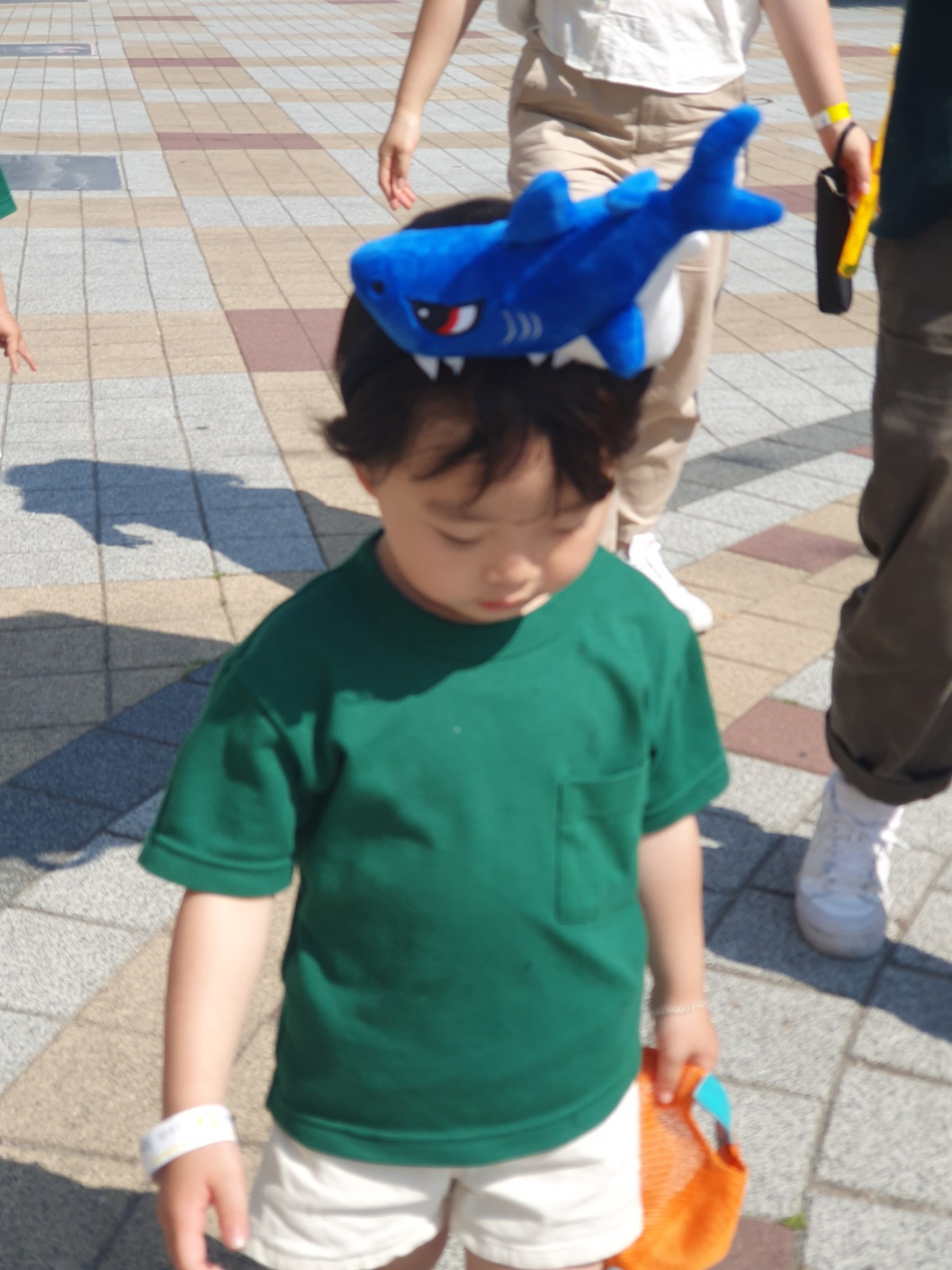 사파리 운행이 15분 정도 남았기 때문에 근처에서 상어 머리띠도 구매해 보고 앞쪽의 놀기이구도 타보았습니다.