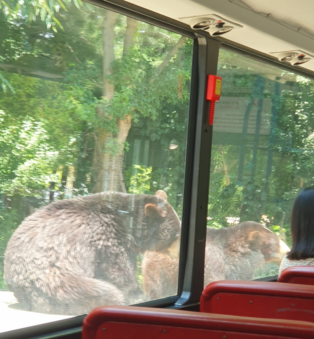 곰을 시작으로 사자와 호랑이를 볼 수 있습니다. 기사님께서 친절하게 동물들의 이름과 나이, 특징들을 설명해 주십니다. 오늘은 손님이 많이 없다며 천천히 버스를 운행해 주시며 안내를 해주셨답니다. 기사님 최고!!