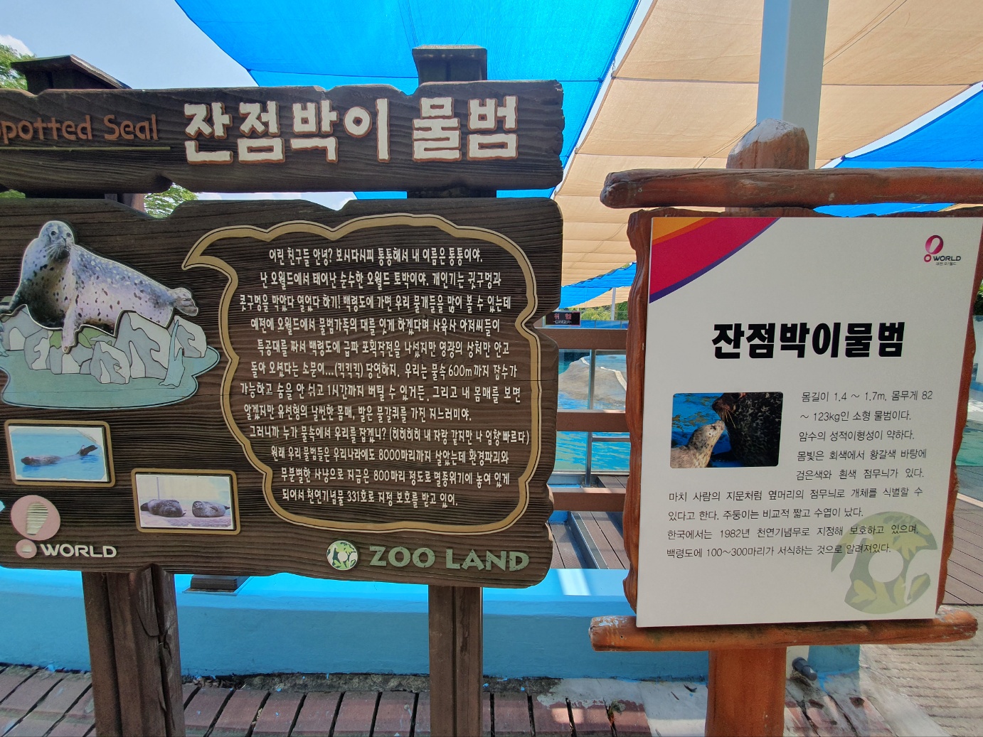 물속을 헤엄치는 물개와 물범을 볼 수 있고 호랑이 실내 관람로도 있는데 너무 더워서 빨리 통화해 나왔습니다.