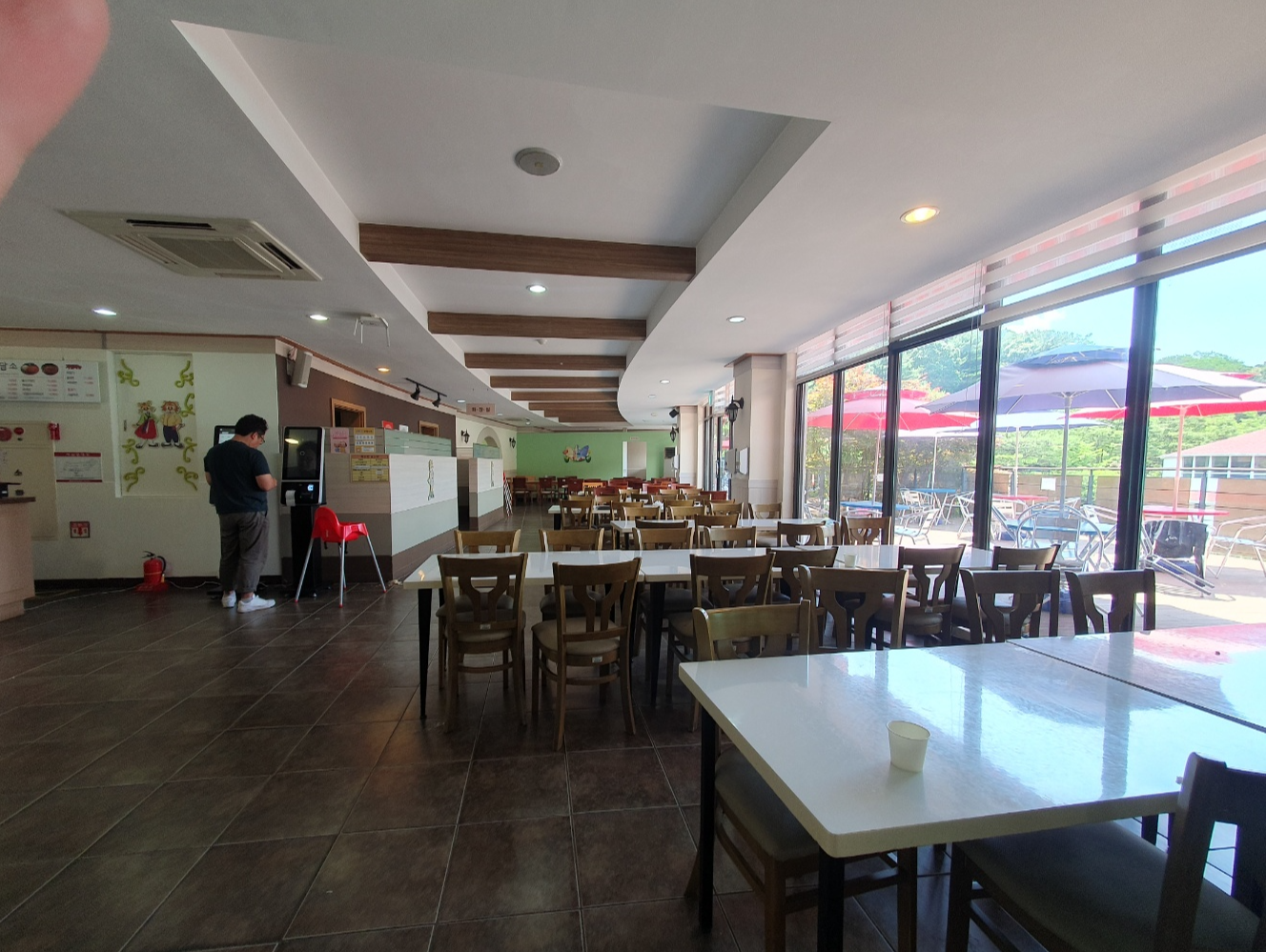 저희는 후룸라이더 쪽에 있는 한식과 양식 메뉴가 있는 비엔담소 식당을 찾았습니다. 넓은 내부와 셀프로 주문을 하고 셀프로 반찬을 떠 와야 합니다.