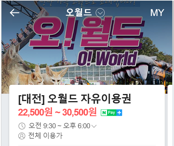 오월드 이용요금/제휴카드 종류 및 할인내용/네이버 예약·할인 방법