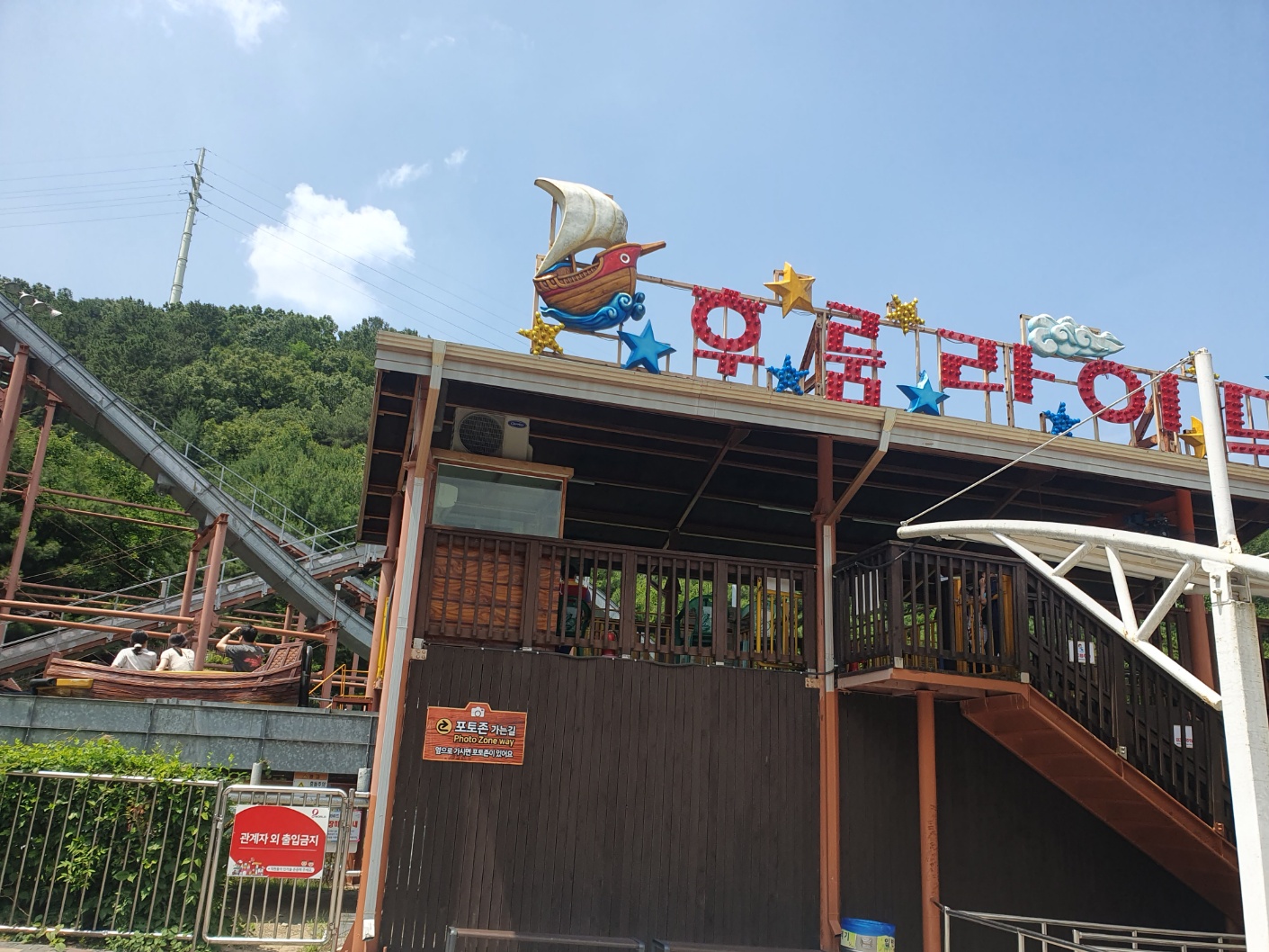 더운 날씨에 타기 딱 좋은 후룸라이드입니다. 사람이 거~의 없어서 앞에 두 팀이 타고난 뒤에 바로 탑승했습니다.