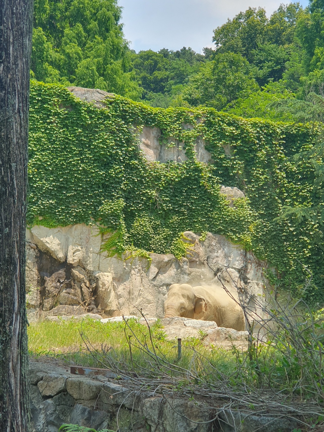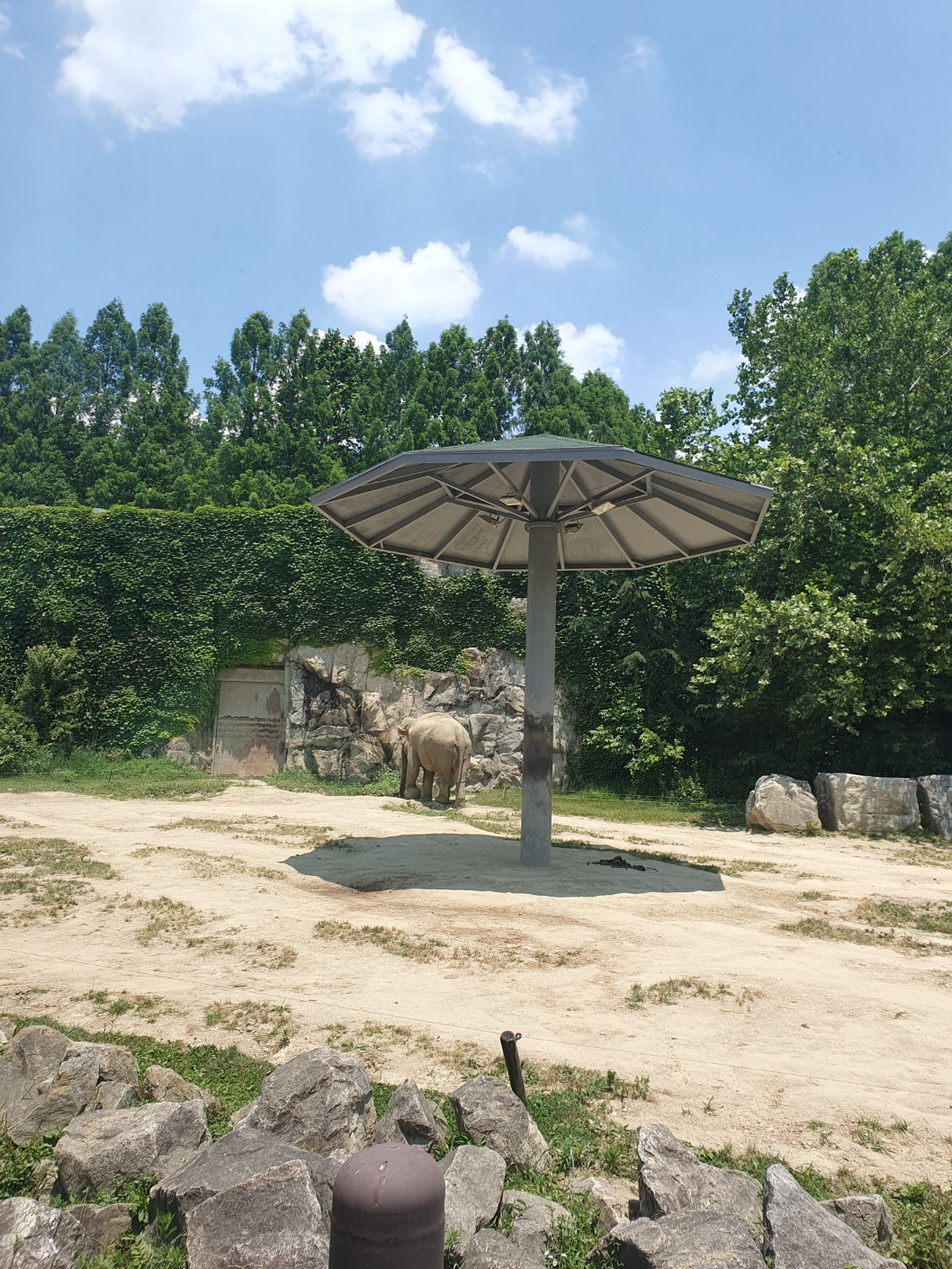 아시아 코끼리 삼돌이입니다. 코끼리가 국제적 멸종 위기종으로 지정되어 이곳 동물원에서 몸값이 가장 높다고 합니다. 저희가 볼 때 마침 모래목욕을 하고 있어 코로 모래를 뿌리는 모습을 볼 수 있었습니다.