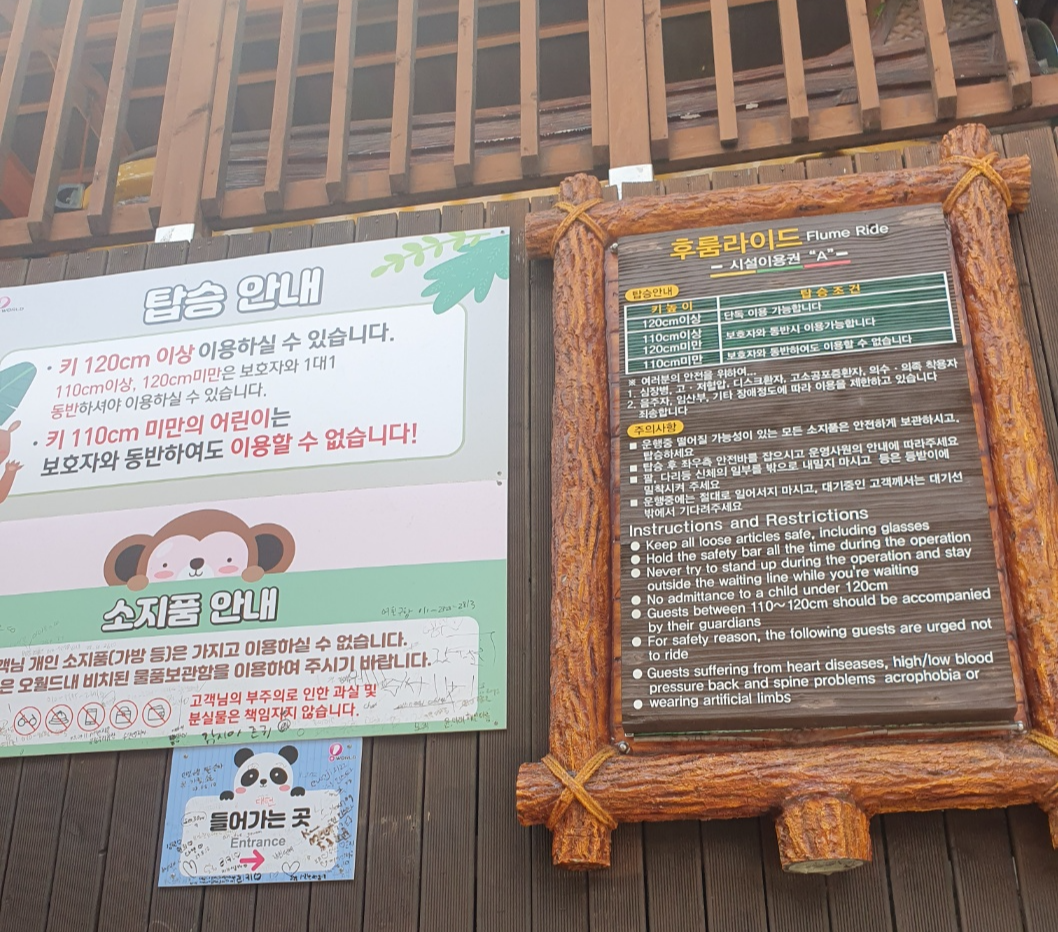 후룸라이드는 키 120cm 이상만 이용할 수 있습니다. 키가 110cm 미만의 어린이는 보호자와 동반하여도 이용할 수없습니다.