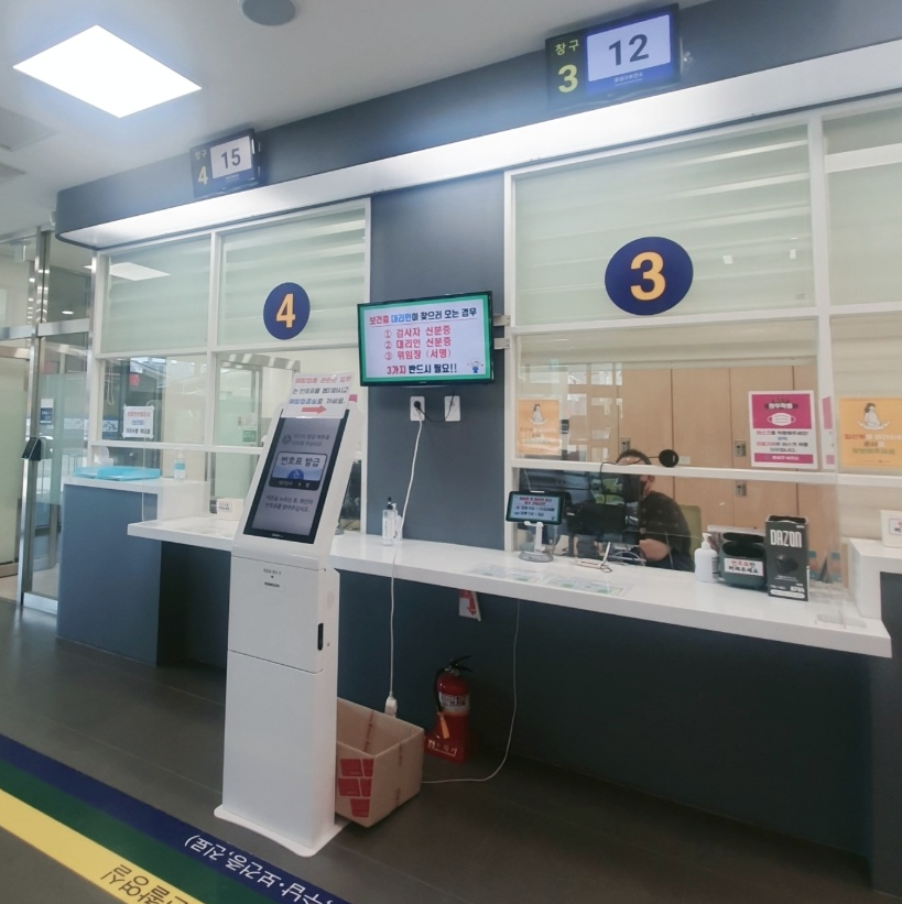1층은 공간이 아주 넓고 쾌적했으며 각종 화면으로 안내를 도와주고 있었답니다. 접수를 하려면 우선 번호표를 뽑아야 합니다. 사람이 없어서 번호표를 뽑자마자 바로 벨이 울렸답니다. 저는 4번 접수창구에서 접수했고 접수자분이 어떤 일로 방문해 주셨는지 물어보셔서 임신 전 산전검사를 받으러 왔다고 하니 신분증을 요청하셨습니다. 신분증 확인 후 '임신 전 검사 안내문'을 주시며 검사 내용, 검사 비용, 검사결과 나오는 기간에 대해 설명해 주셨습니다.