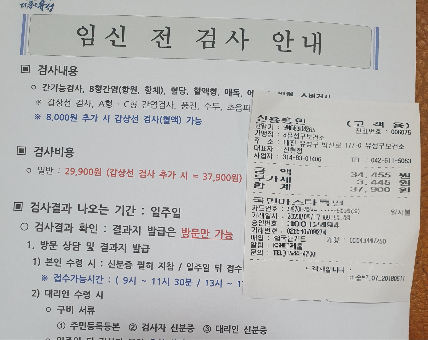 며칠 전 '유성구 보건소 일반인 산전검사'에 대한 내용을 포스팅했었는데요, 오늘은 임신 전 일반인 산전검사를 직접 받으러 다녀온 후기를 적어 보려 합니다.