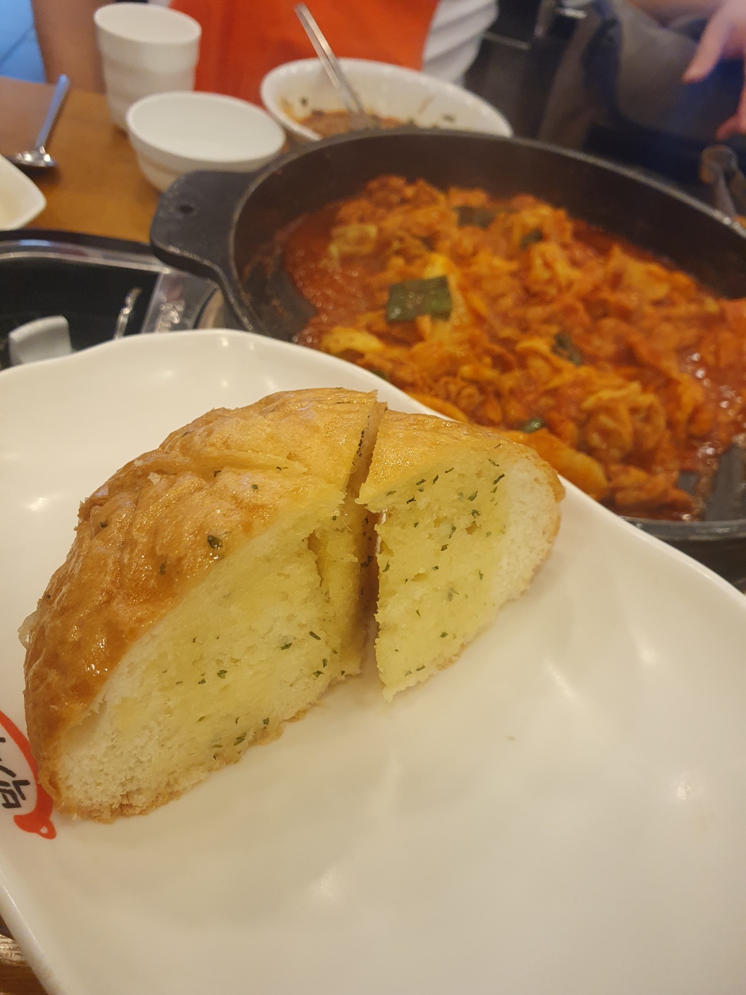 박가닭갈비를 시키면 달콤 빠네가 세트로 같이 나오네요! 맛은 마늘빵 맛으로 달달하고 의외로 닭갈비랑 같이 먹으니 괜찮았습니다.