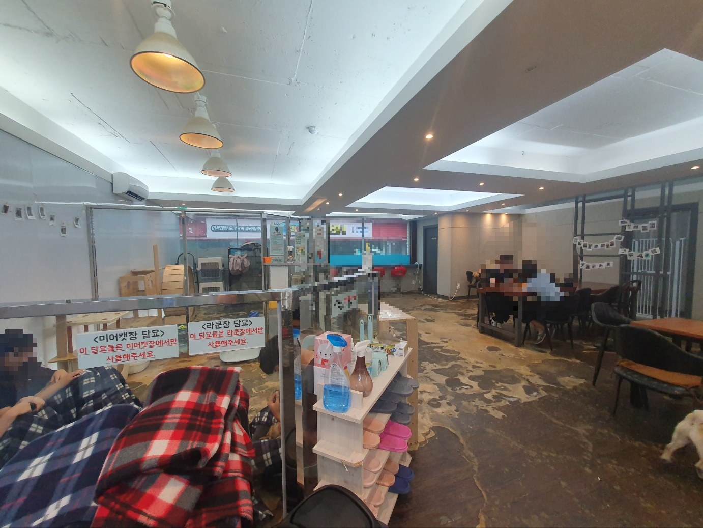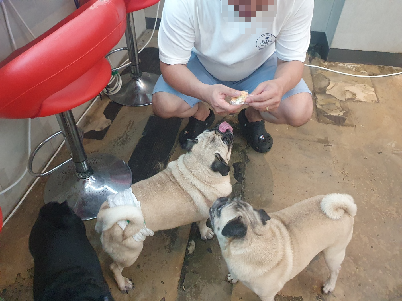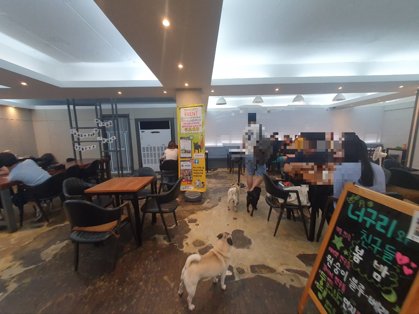 입구 왼쪽 편으로 미어캣존과 라쿤존이 있고 넓은 홀에 테이블들이 생각보다 많았습니다. 간식을 가지고 있어서인지 퍼그 강아지들이 졸졸졸 따라오는데 얼마나 귀엽던지!!