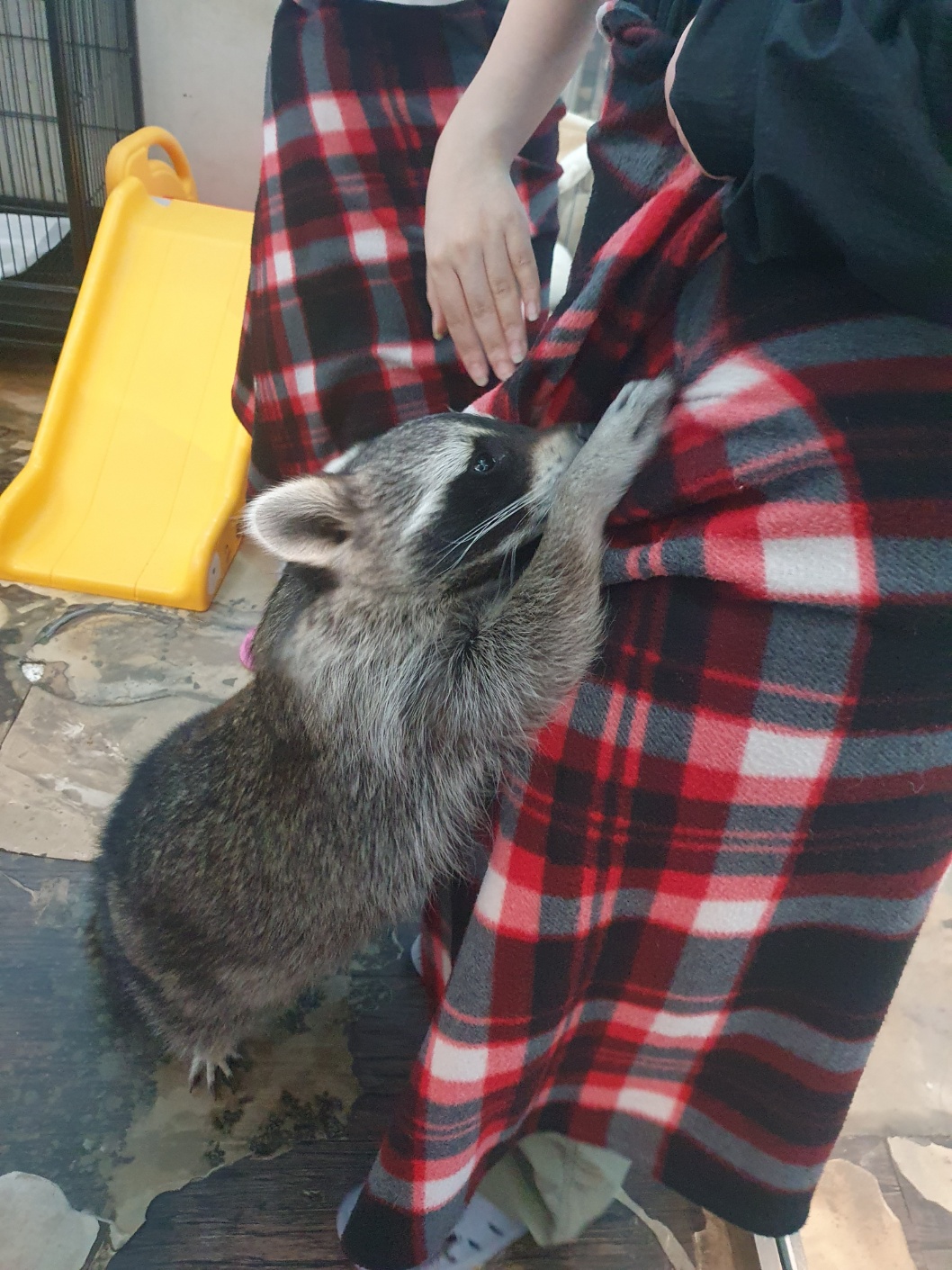 라쿤존에는 여러 명의 사람들과 함께 들어가서 라쿤의 소개를 받고 직접접 먹이도 줘보고 꼬리도 쓰담해 볼 수 있었습니다. 호기심이 많아 안에 들어간 사람들의 주머니를 전부 뒤지는 모습이 너무나 귀여웠답니다.