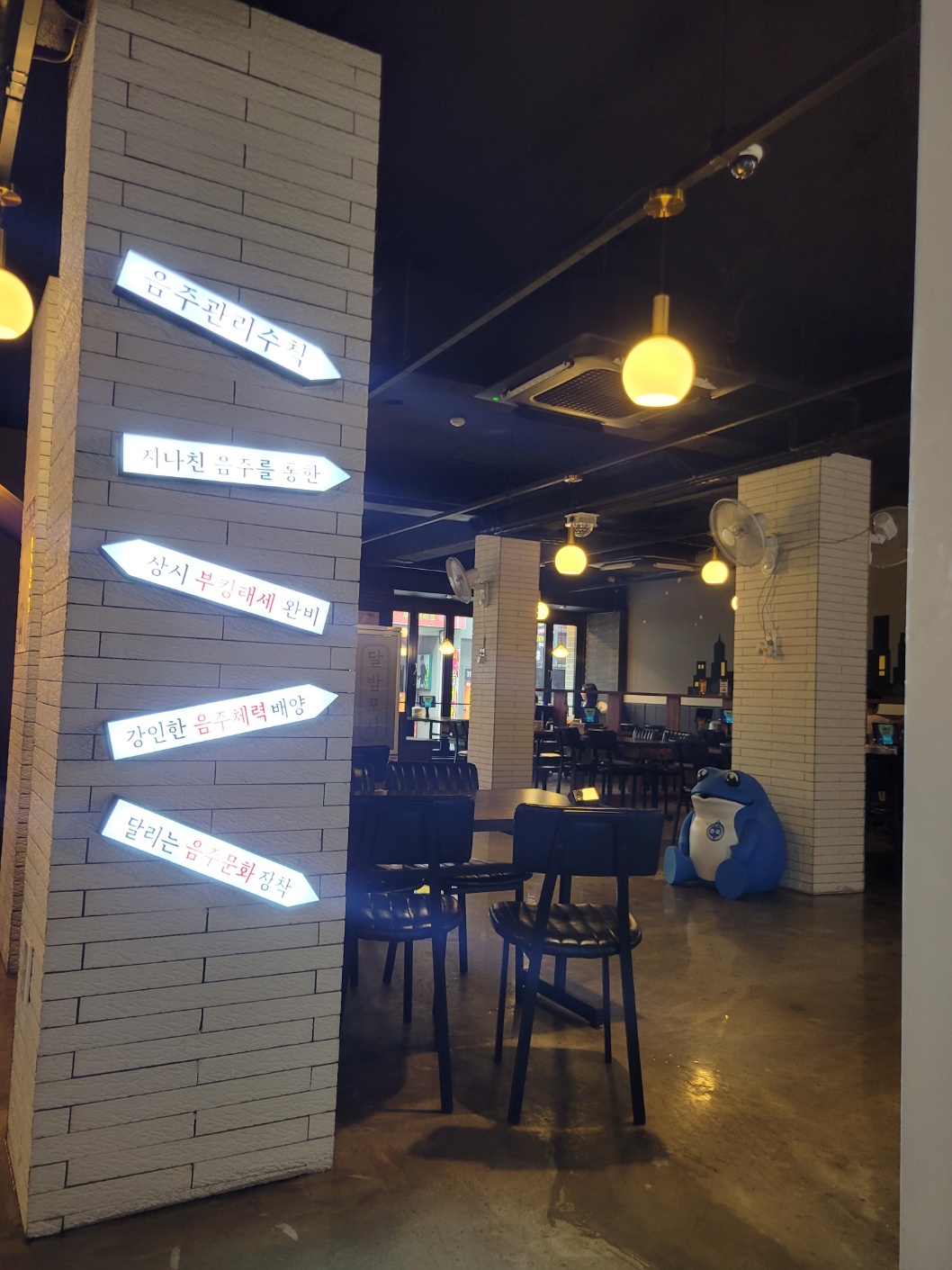 달밤포차 내부입니다. 시원시원하고 깔끔한 인테리어로 꾸며져 있습니다. 엄청난 규모로 테이블 수도 상당한데요, 눈으로 대충 봐도 약 30개 정도 되려나~? 싶습니다. 단체 모임으로도 제격이고 둥근달이 떠있는 개별적 공간이 있고 칸막이도 있어 데이트 장소로도 너무나 좋아 보입니다.