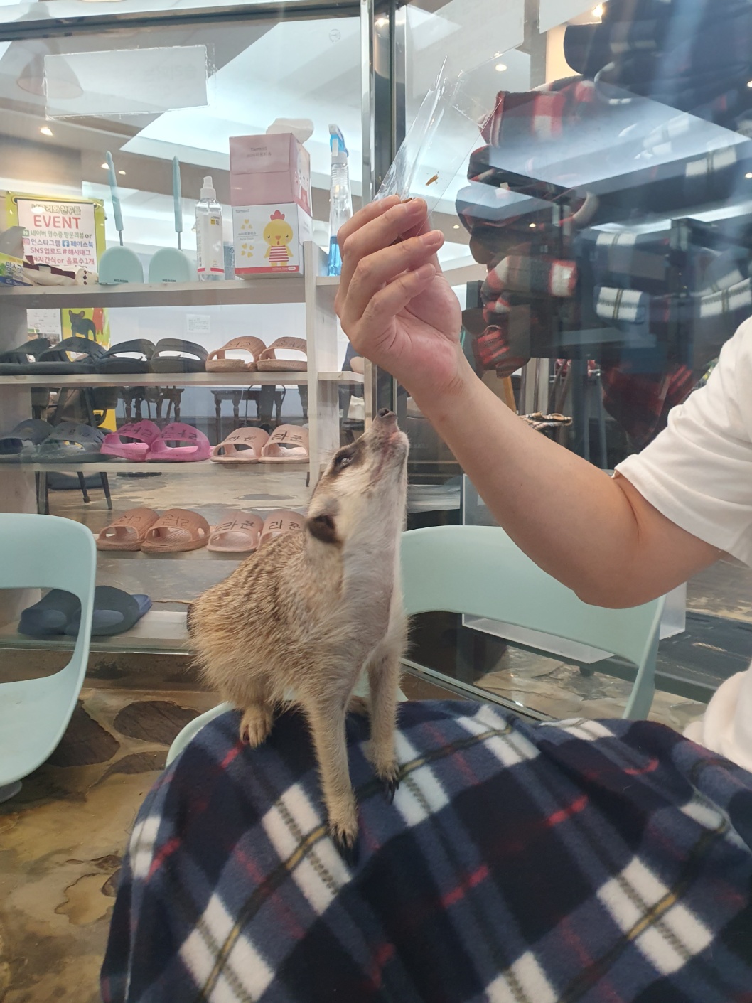 생각보다 너무 작고 소중한 미어캣!! 제 무릎에서 잠을 자고 가는 친구도 있었답니다.