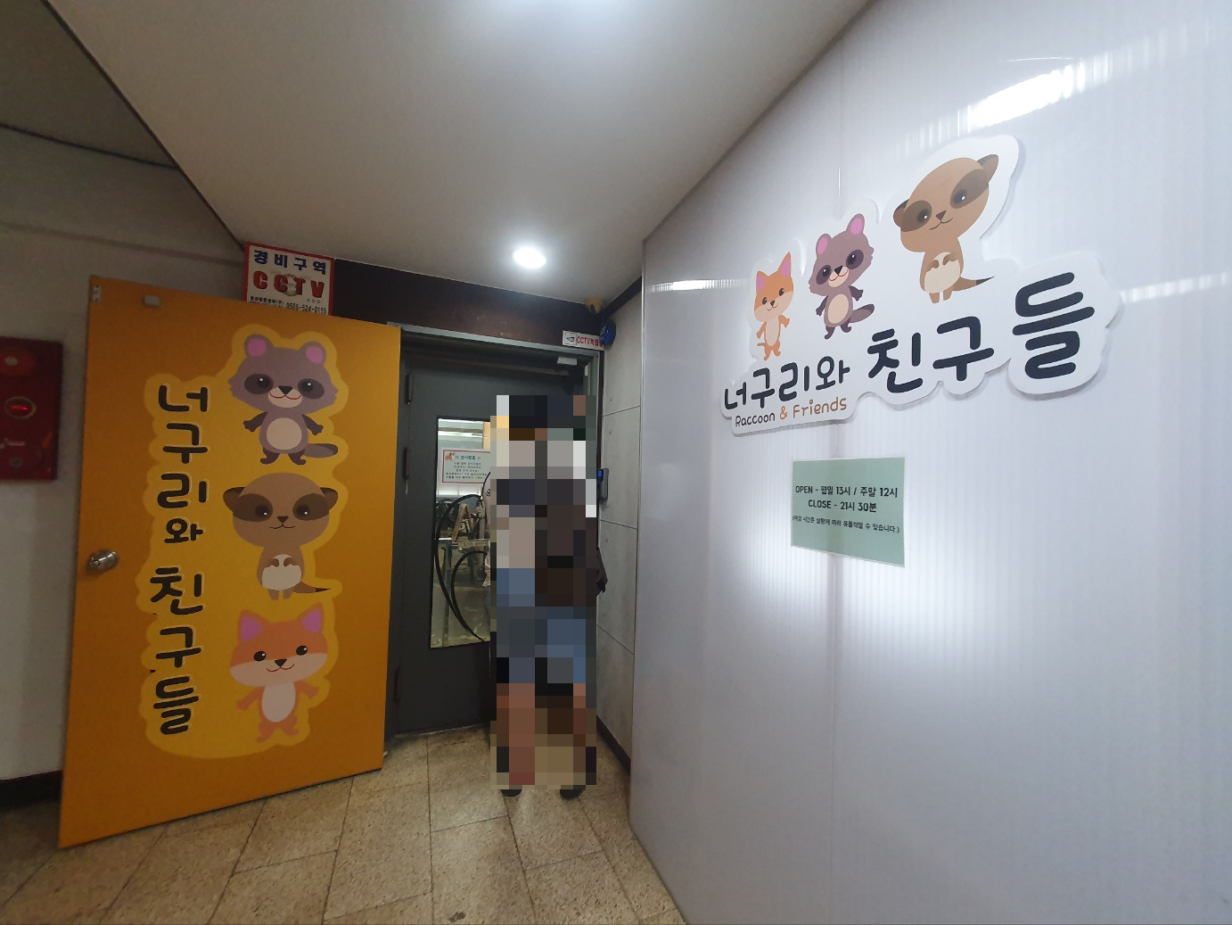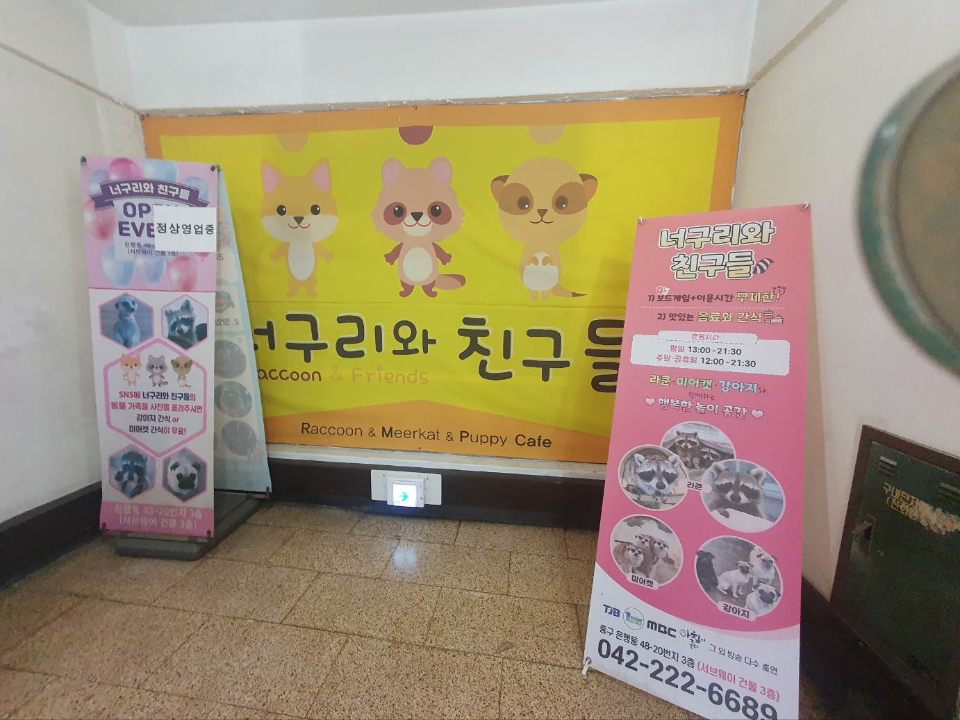 예전부터 가보고 싶었던 라쿤과 미어캣이 있는 이색카페 '너구리와 친구들 은행점'입니다.