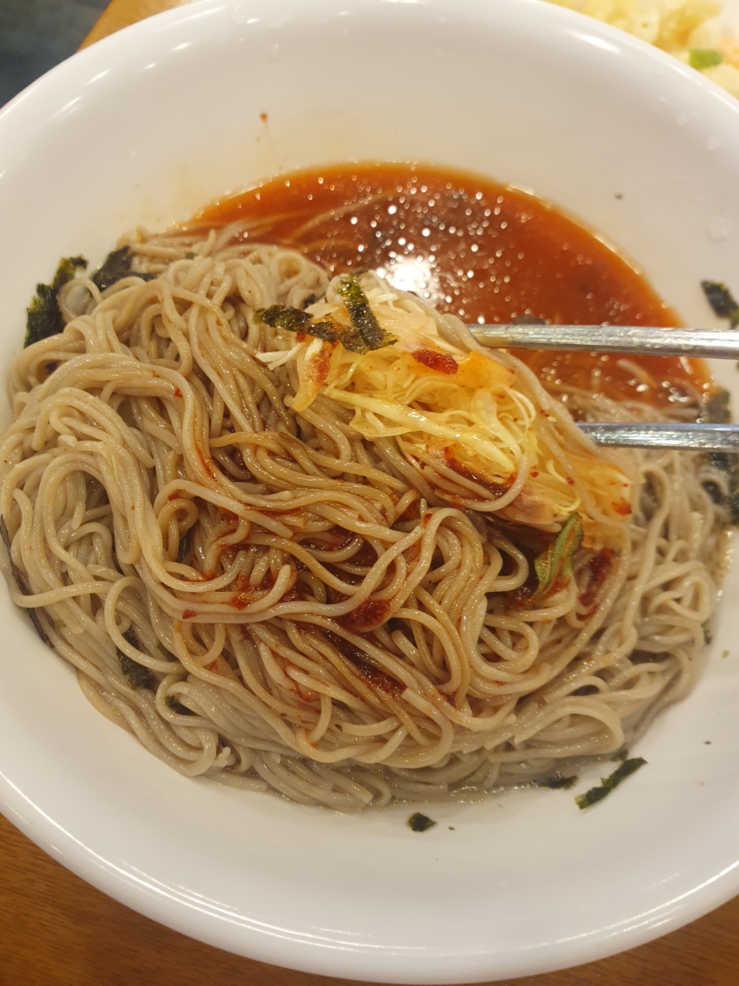 비빔메밀막국수는 시원할 거라 생각해 주문했는데 안 시원해서 그냥 국물이 더 있는 막국수 맛이었답니다.