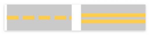 황색 점선은 흰색 점선처럼 다른 차선으로 이동은 가능하지만, 잠시 동안만 다른 차선으로 침범이 허용하는 점에서 차이가 있습니다. 좌회전 및 우회전, 추월 시에만 잠깐 동안 차선변경을 할 수 있다는 의미입니다.