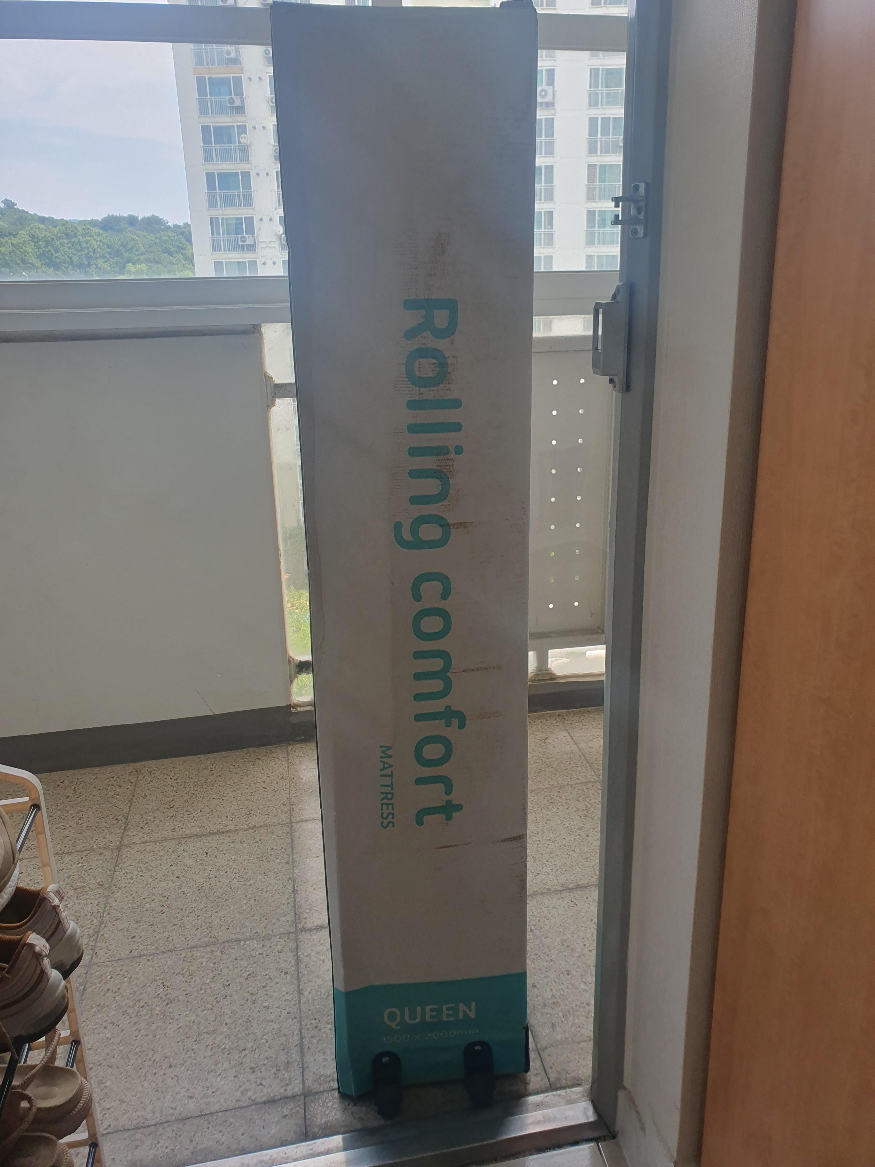 사진에 보시는 것과 같이 밑부분에 바퀴가 달려있고 상자 위쪽에 손잡이가 하나 있습니다. 바퀴가 보이는 방향에 서서 손잡이를 잡고 기울이며 끌어서 움직일 수 있습니다. 저는 퀸 사이즈이고 무게가 나가서 여자 혼자 끌기에는 쉽지가 않았지만 현관 안까지 어느 정도 이동하기에는 괜찮았습니다. 나중에 남편이 와서 함께 했는데 저 혼자서는 바퀴가 없었으면 꿈쩍도 못 시켰을 것 같았답니다.