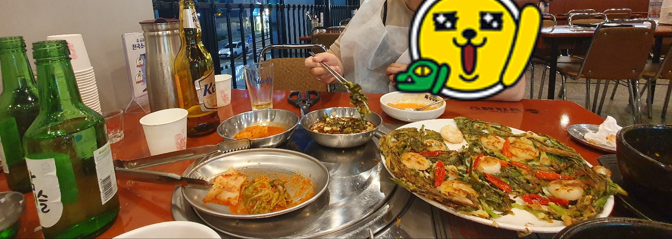 놀기를 포기하고 숙소로 곧장 이동, 숙소 근처에서 저녁을 먹기 위해 식당을 찾던 중 눈에 들어온 파란색 밝은 빛을 내뿜는 '달래해장' 간판을 보고 해장국을 좋아하는 우리기에 고민 없이 식당으로 향했답니다.
