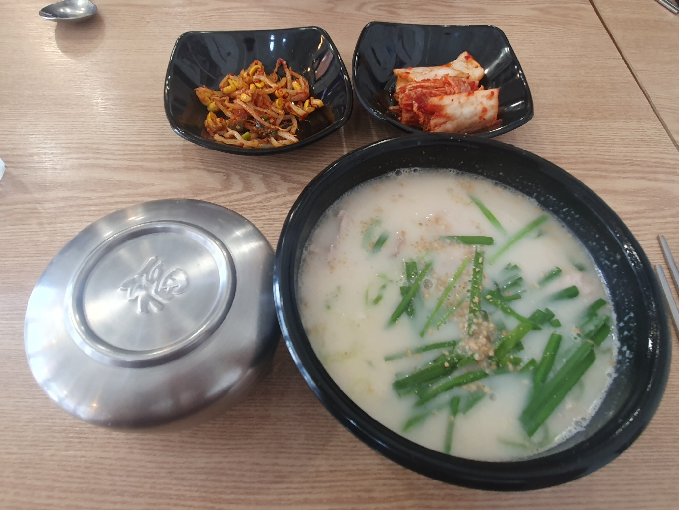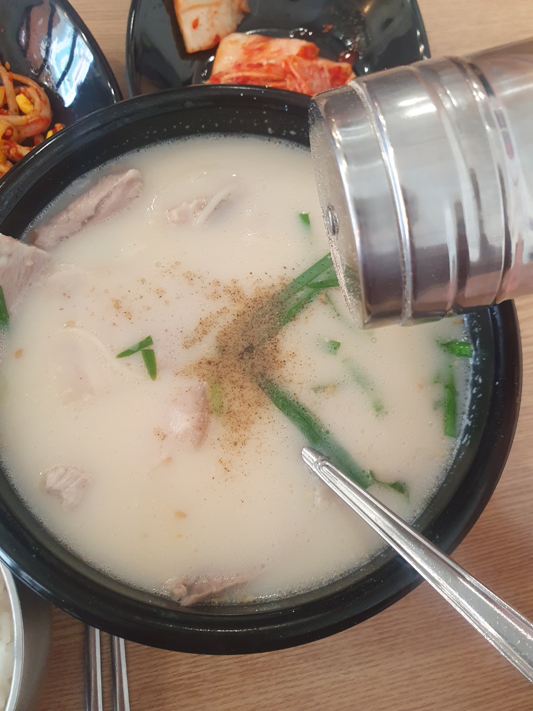 테이블 위에 국밥집에서 많이 보이는 소금이 없어서 의아해했는데 국물에 간이 다 되어 나왔답니다.