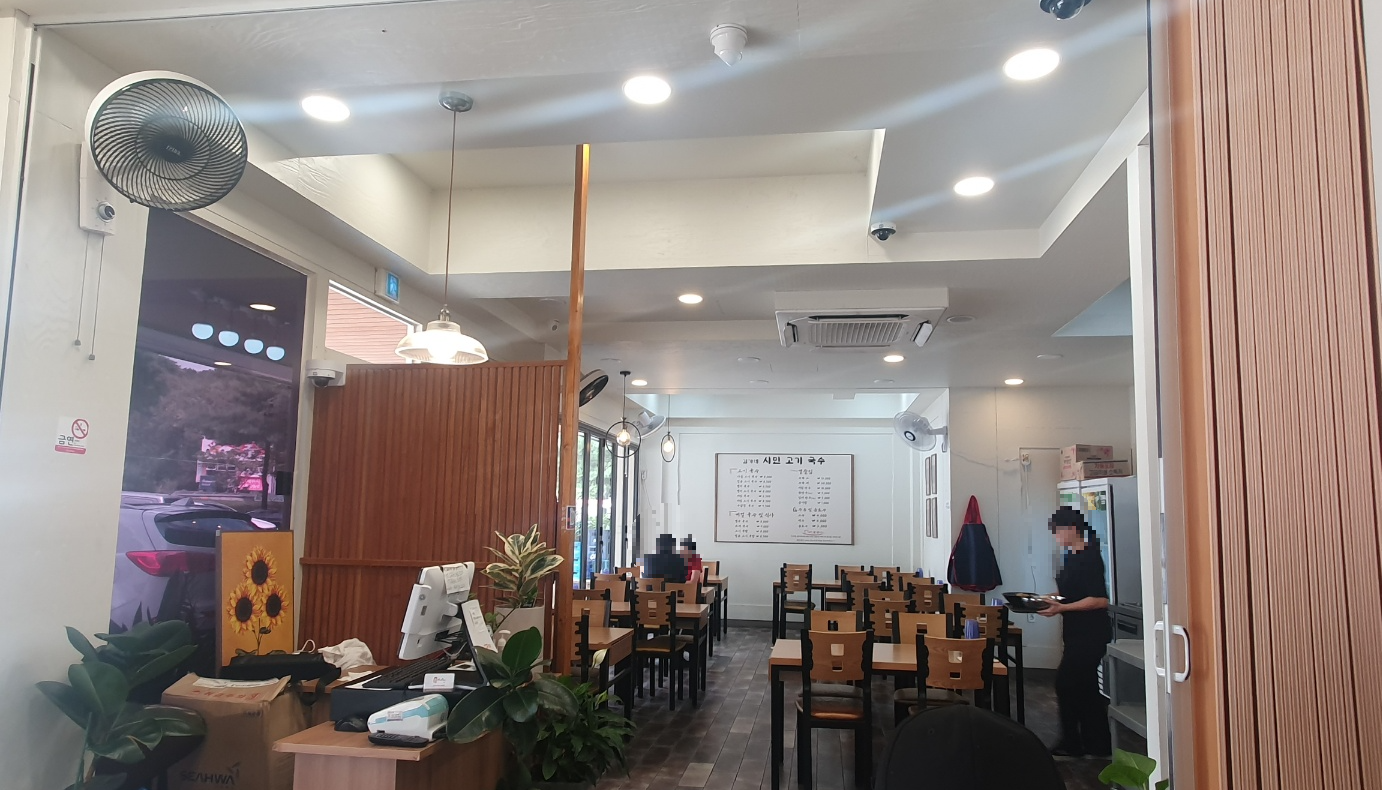 내부는 좁지 않게 배치된 식탁들과 벽면엔 눈에 잘 들어오는 메뉴판이 보입니다.