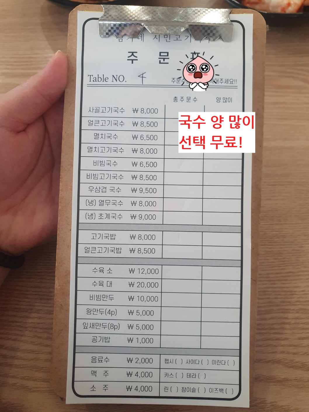 이곳에서 주문은 주문표에 체크하는 것으로 진행됩니다.